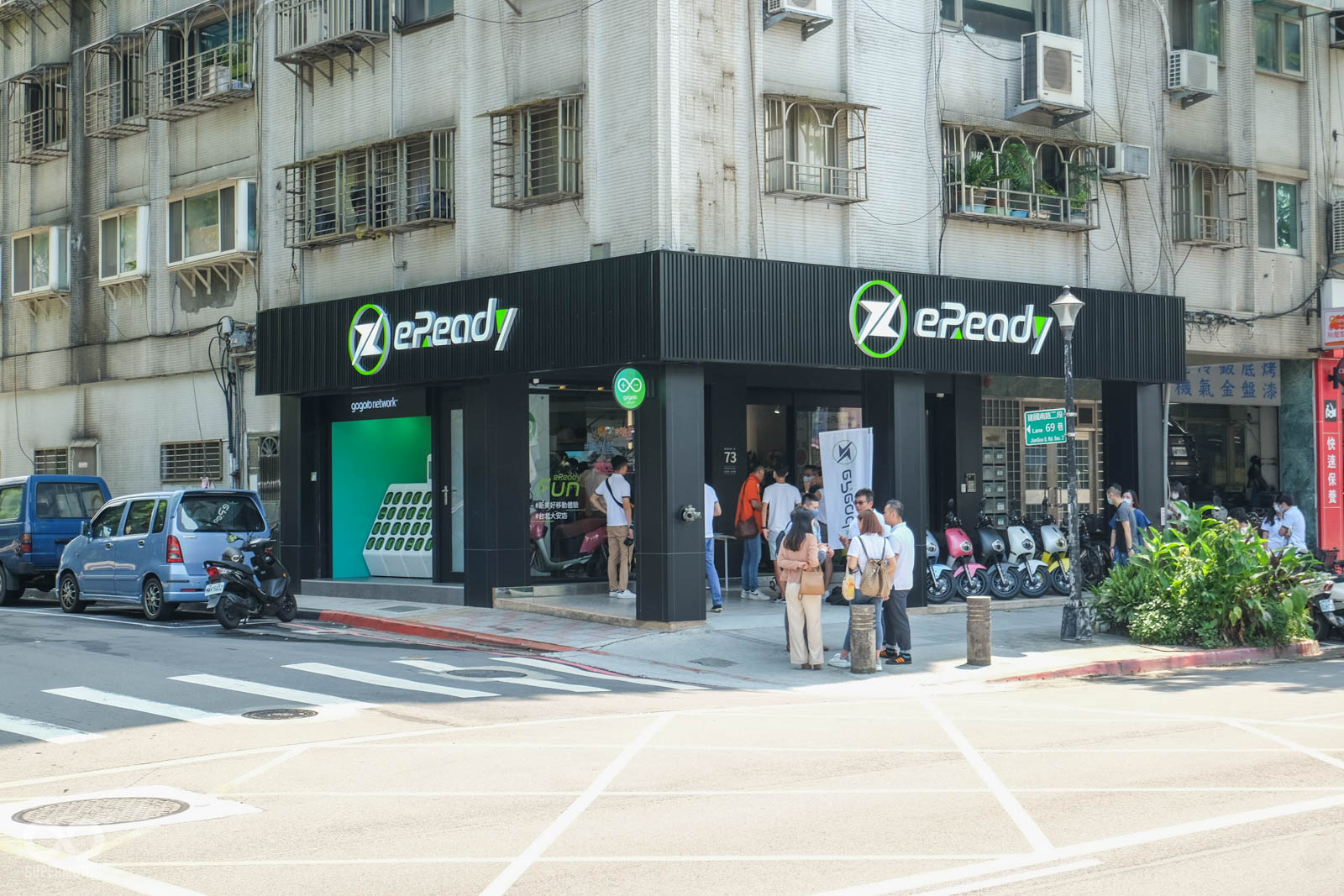 該店點也因為設立於轉角處,所以從外觀上來看相當霸氣,除了正面可透過櫥窗看見eReady Fun展示外,另一側也有GoStation換電站來服務PBGN車主。
