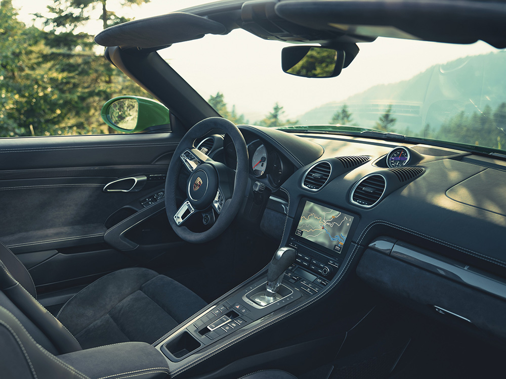 透過高效率的PDK雙離合器自手排變速箱,換檔時不會出現換檔頓挫,並且提升了整體換檔的舒適度與加速性能表現。與配備手排變速箱的718相較之下,擁有420 PS(309 kW)並搭載7速 PDK 雙離合器自手排變速箱的的718 Spyder與718 Cayman GT4百公里加速僅需3.9秒,比起手排款快上半秒,並且13.4秒即可由靜止加速到200 km/h,這個成績也比手排款縮短了 0.4 秒。