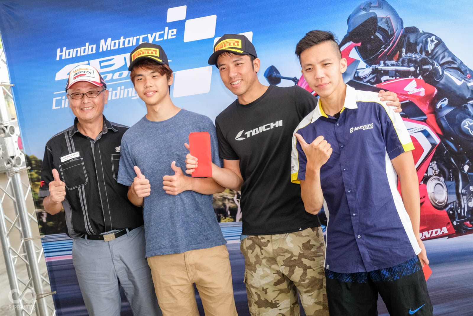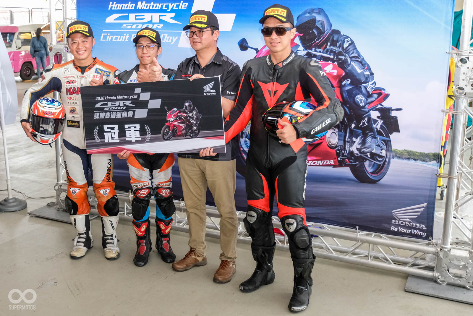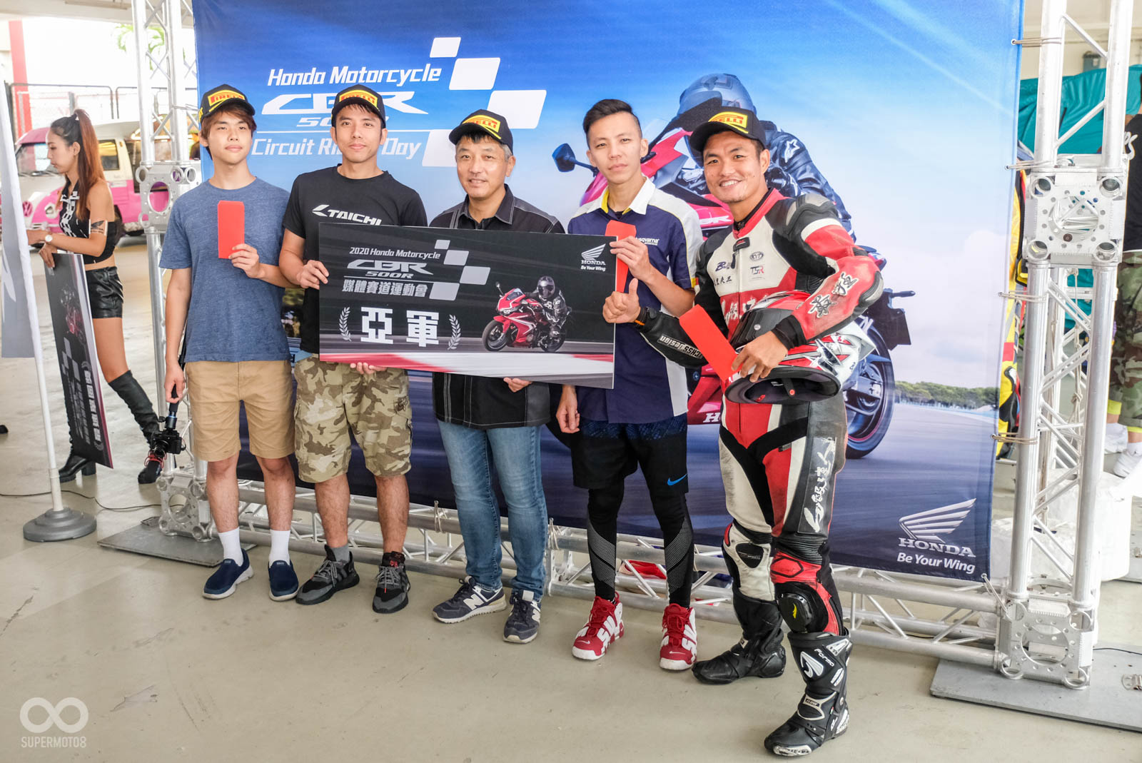 下午頒獎活動,由於亞軍、季軍成績相當接近,HONDA決定現場加碼升級季軍獎品與亞軍同等!最後的冠軍、雙亞軍分別為:SUPERMOTO8/Mobile01、Moto7/戰神鄒小捷、小三/MotoWind/水野協理。