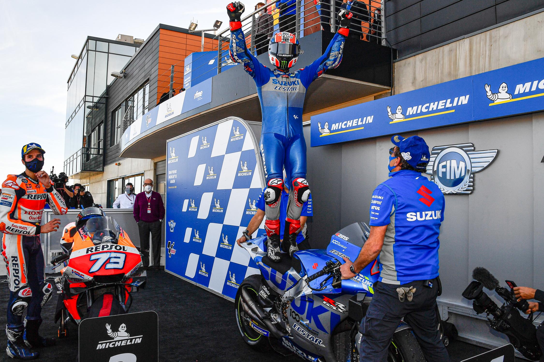 「我知道沒有多少人看好我在這戰能夠登上頒獎台(編按:這是真的,Rins的台彩賠率高的嚇人!),但我內心很平靜,我在起跑後有一個相當不錯的開局,我和YAMAHA展開戰鬥,當我在YAMAHA賽車後方時,我清楚的看到他們正在掙扎,我在Maverick的後方跟著跑時,我便知道自己比所有人的速度都要更快,我發現要超YAMAHA的車相當容易!」Rins說到,如果Rins沒有因為肩傷而在首戰比賽中失利,或是在Red Bull Ring與Le Mans能夠更謹慎的處理比賽的話,那麼目前的積分戰況肯定會更不一樣。甚至要與隊友Joan Mir平起平坐都不會只是空談。