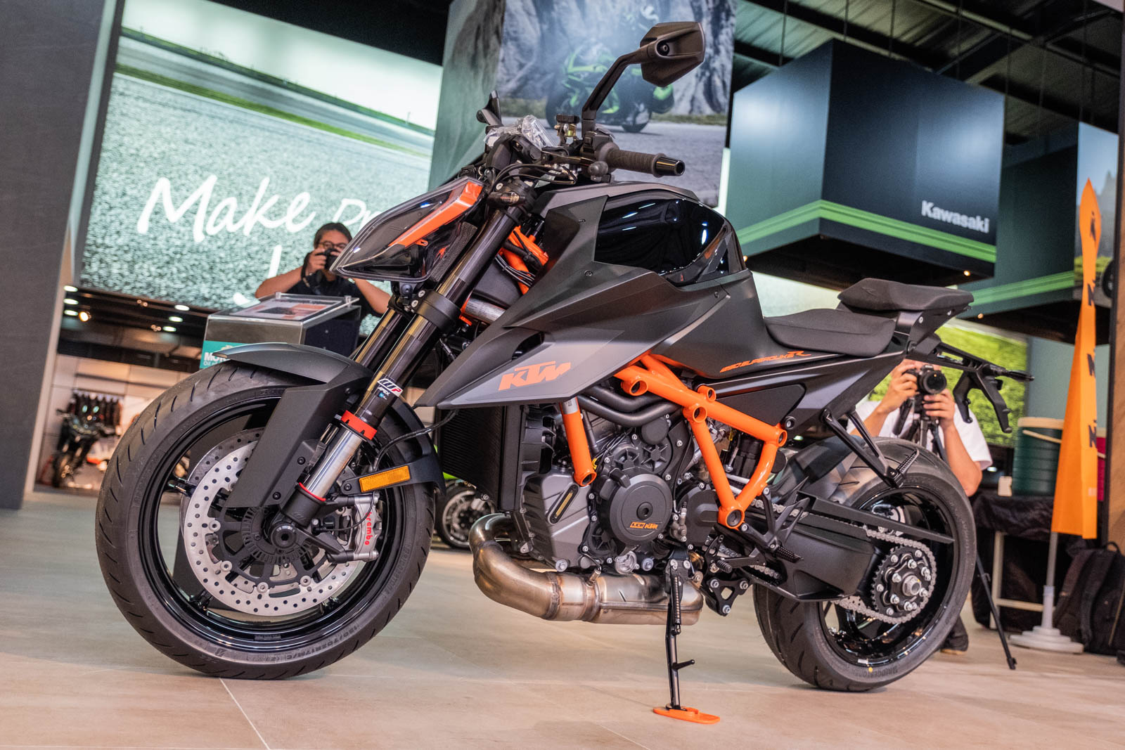 硬體規格,前煞和890 DUKE R一樣使用Brembo Stylema輻射四活塞卡鉗配320mm雙浮動式碟盤、後輪Brembo雙活塞卡鉗配240mm碟盤;前懸吊為WP APEX 48mm全可調倒立式前叉,後懸吊WP APEX 全可調(高低速壓縮、回彈、液壓式預載調整)中置單槍。