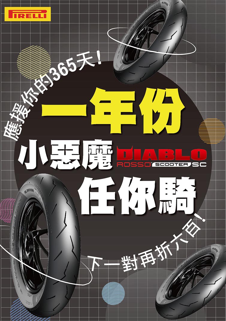 為回饋市場對倍耐力DIABLO ROSSO™ SCOOTER SC(小惡魔)的支持與熱愛,繼今年第二季推出首波活動之後,緊接著又推出【一年份小惡魔任你騎】第二波優惠活動。活動自2020年11月1日至2021年1月31日截止,跨年度的活動,要給喜愛倍耐力DIABLO ROSSO™ SCOOTER SC(小惡魔)的消費者,震憾的驚喜!