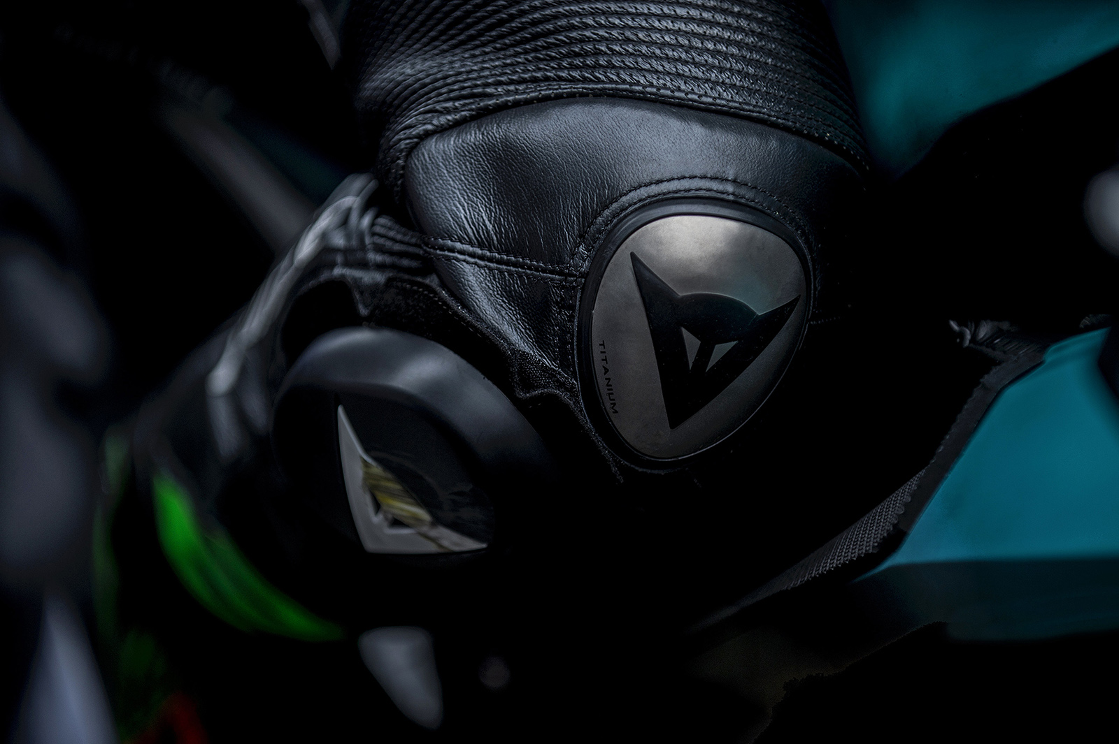 Dainese透過安裝在特定位置的金屬塊,讓金屬發揮耐磨、抗高熱的特性,通常在Dainese皮衣中可以在肩膀、手肘、膝蓋處找到金屬防護塊的蹤跡,而這些部分通常使用鋁或是鈦金屬,確保車手活動靈活性與不增加過多重量是基本要求,雖然對於連身皮衣來說,使用金屬塊僅佔了一小部分,但他依舊有它存在的原因與功效。