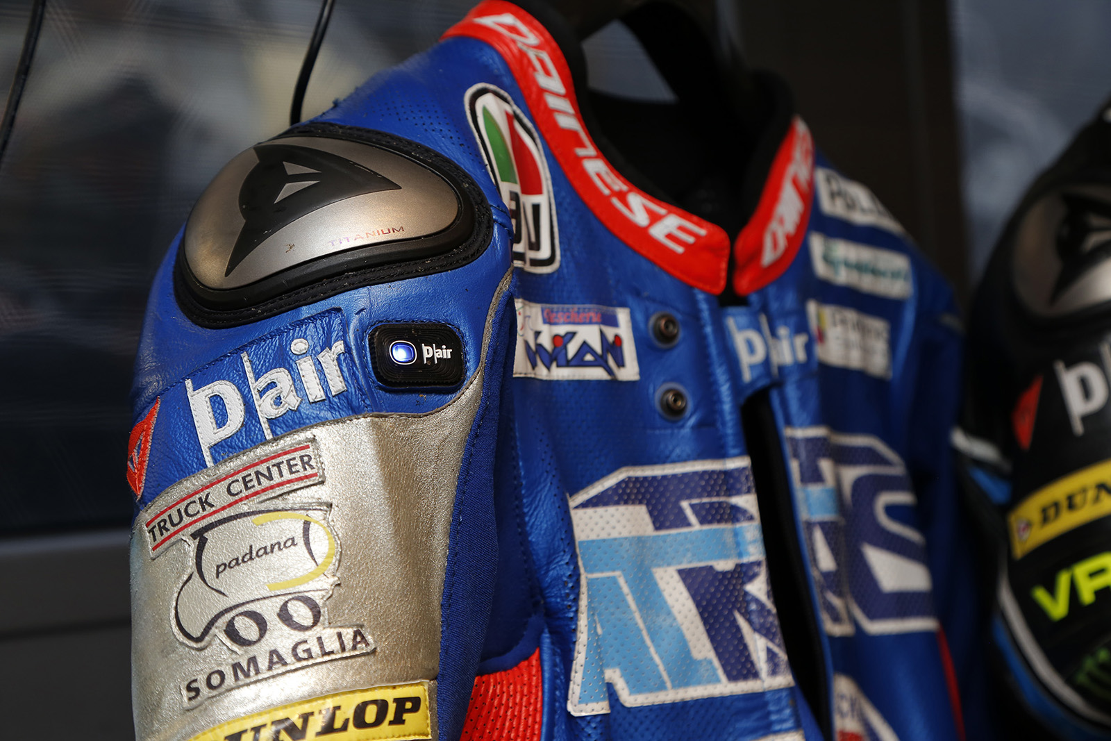 賽車皮衣經過多年演進,從初期僅有簡單的皮革搭配加厚的軟質防護塊,到近幾年大量導入碳纖維、金屬等材質輔助等,此外還有安全氣囊功能保護騎士受到瞬間衝擊,然而我們可以發現有些市售皮衣會在外層,少量加入金屬防護塊,此舉同樣也是為了安全考量。