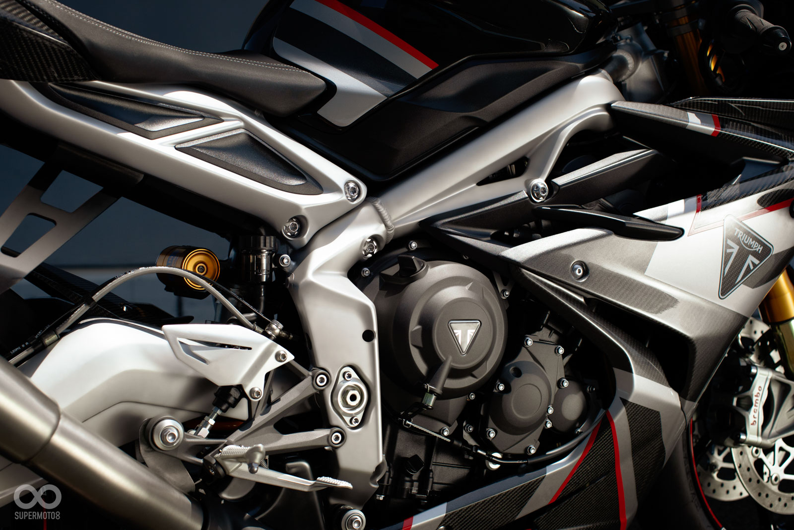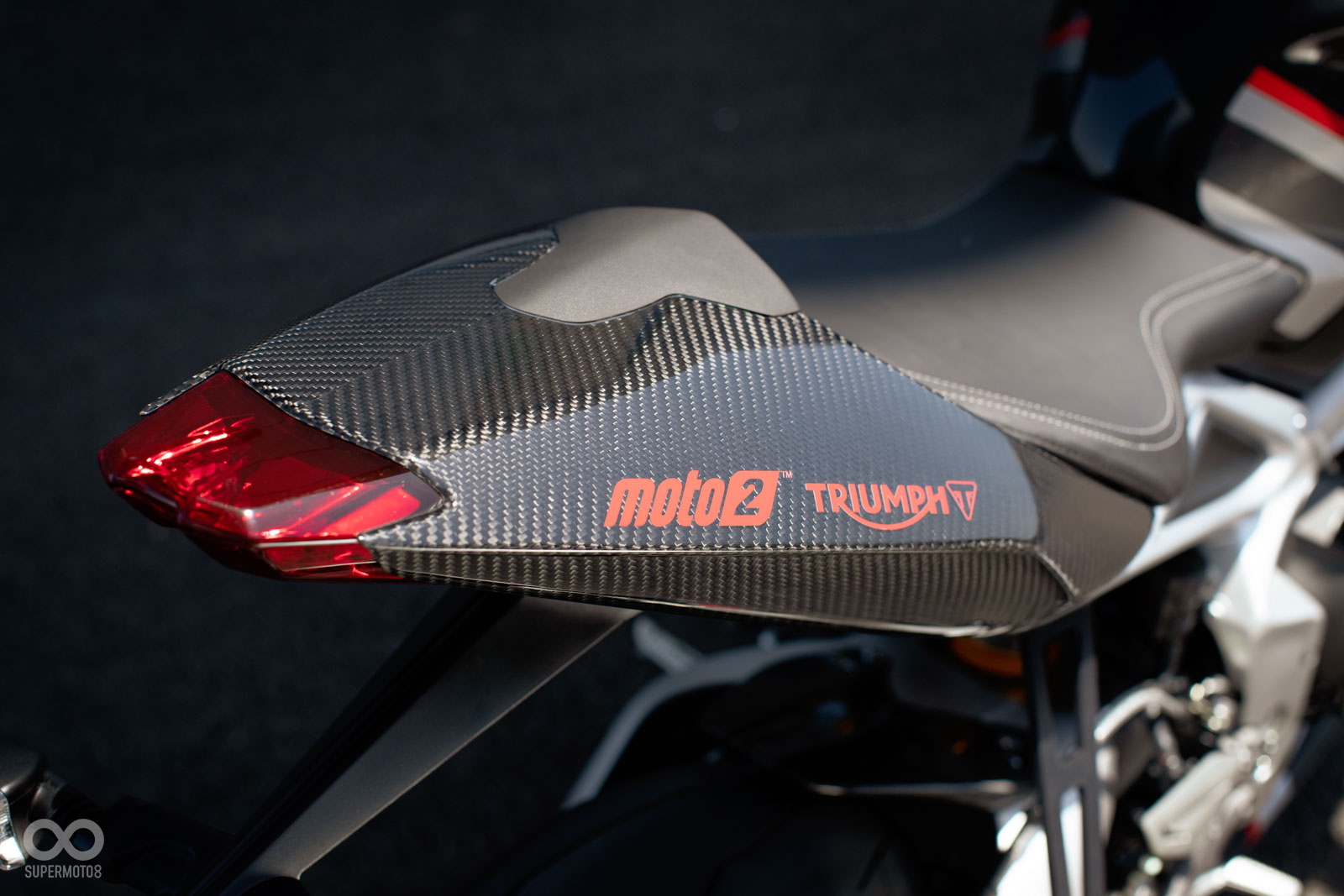 最大馬力130 PS、最大扭力80Nm,最高轉速紅線區為13,250 rpm,硬體配置擁有Brembo Stylema煞車系統、前 Öhlins NIX 30後Öhlins TTX36懸吊系統、Pirelli Diablo Supercorsa SP性能配胎,軟體部分搭載進退檔快排系統、ABS、循跡系統、電子油門以及包含賽道模式在內的五種騎乘模式皆列為標準配備;Daytona Moto2 765採用鈦合金製進氣門、強化型活塞、MotoGP等級的DLC塗層活塞銷、全新凸輪軸、進氣歧管及活塞連桿等,搭配上一組ARROW排氣管,從內到外幾乎就是一台Moto2廠車的道路版,為凱旋的三缸歷史再添一筆重大榮耀。