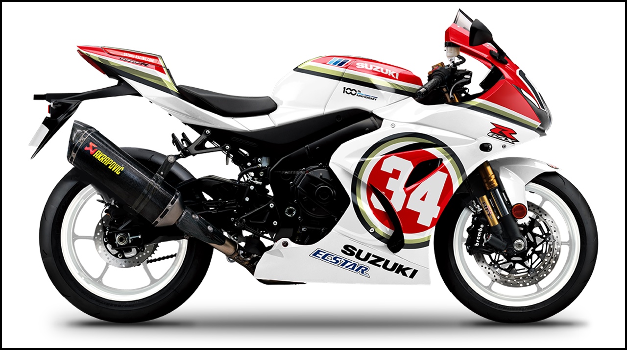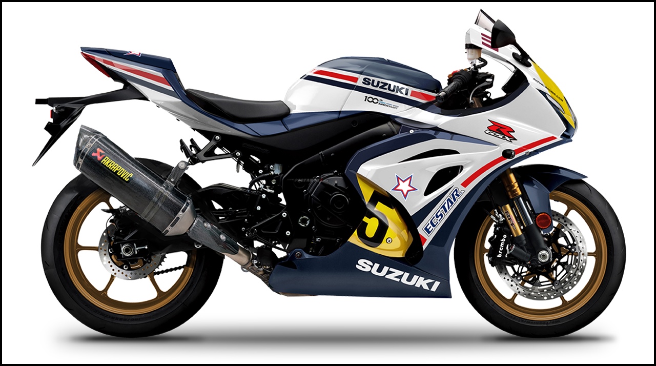 根據外媒報導,GSX-R1000R LEGEND EDITION傳奇冠軍特仕版除了換裝經典的賽車塗裝之外,還會配有Akrapovič的蠍子管以及可選號的坐墊設計。