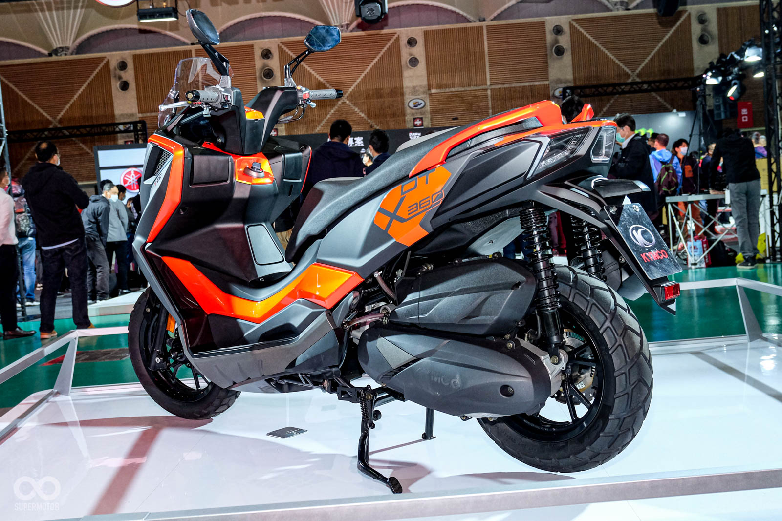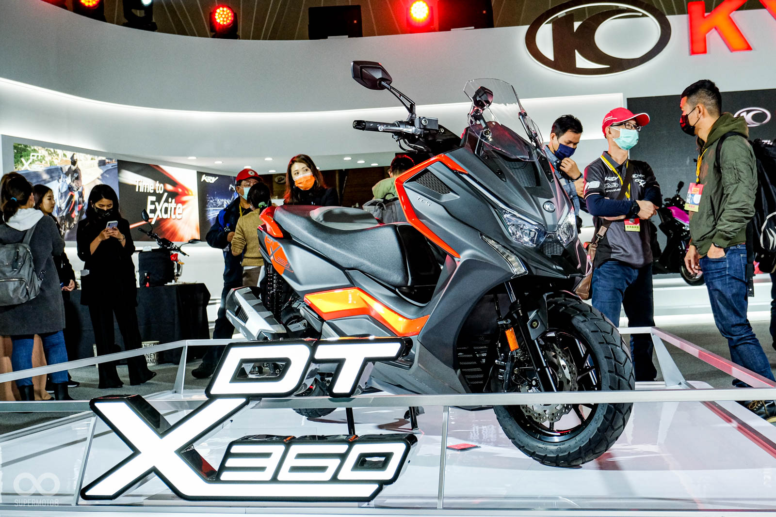 KYMCO全新的冒險跨界黃牌羊DT X360也實車現身會場,DT X360外型使用相當有ADVENTURE風格的尖鳥嘴車頭、越野寬把、加高坐墊等設計,此外DTX360更有豐富的好料配備,像是KEYLESS系統、TCS循跡控制、彩色液晶儀表等,KYMCO今日也在會場公布DT X360的正式售價為19.8萬元。