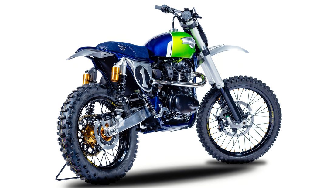 Mário Raphael Soares保留的W800的車架與773c.c.並列雙缸引擎,但針對引擎外觀進行黑化烤漆,並換上一顆更小的油箱與加入座墊下隱藏式副油箱設計;此外,前叉部分則是巧妙的換上KLX 450的Showa前叉組來強化越野性能,後懸吊則是使用Öhlins雙槍後避震搭配上訂製的鋁製後搖臂。