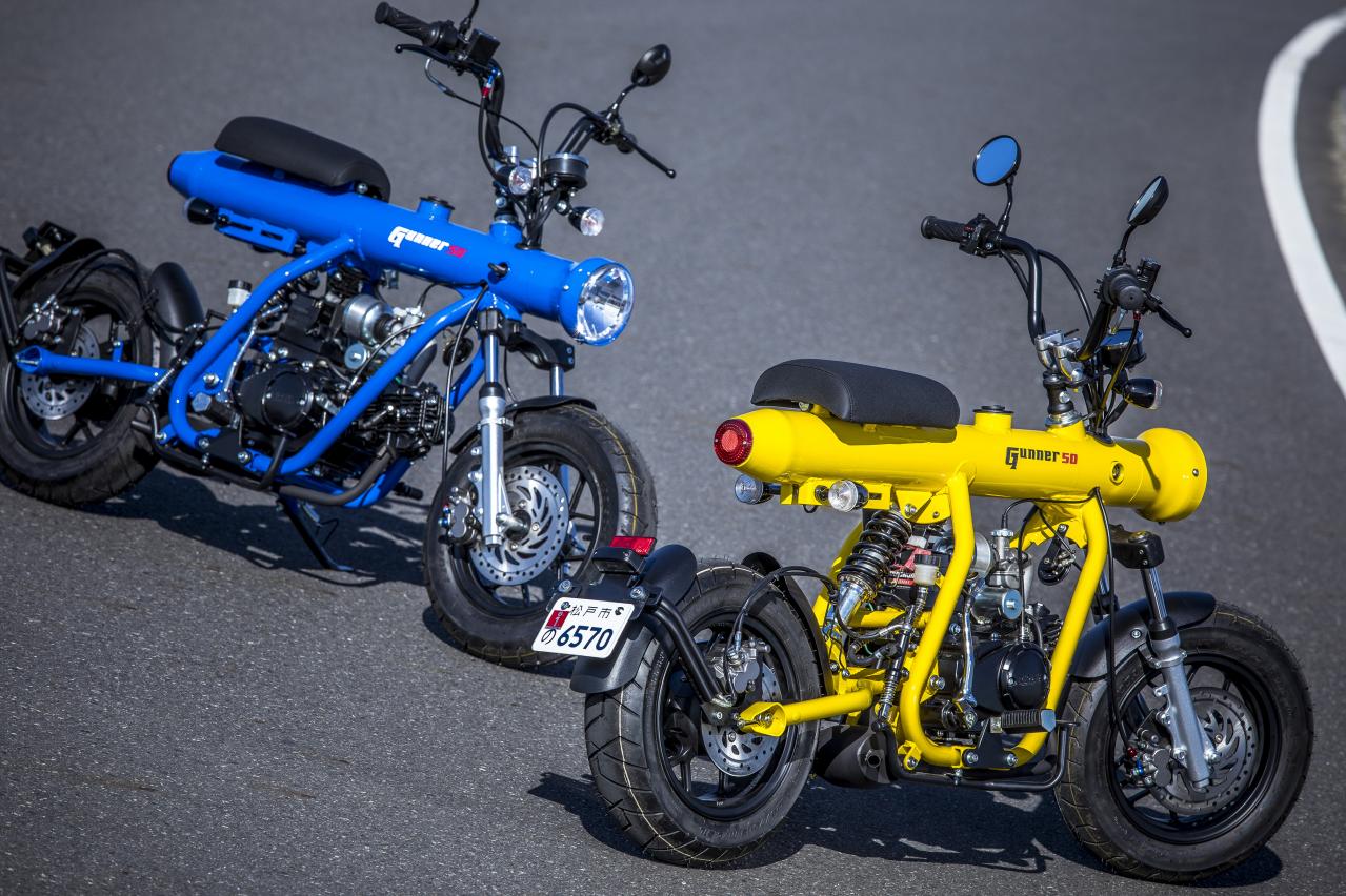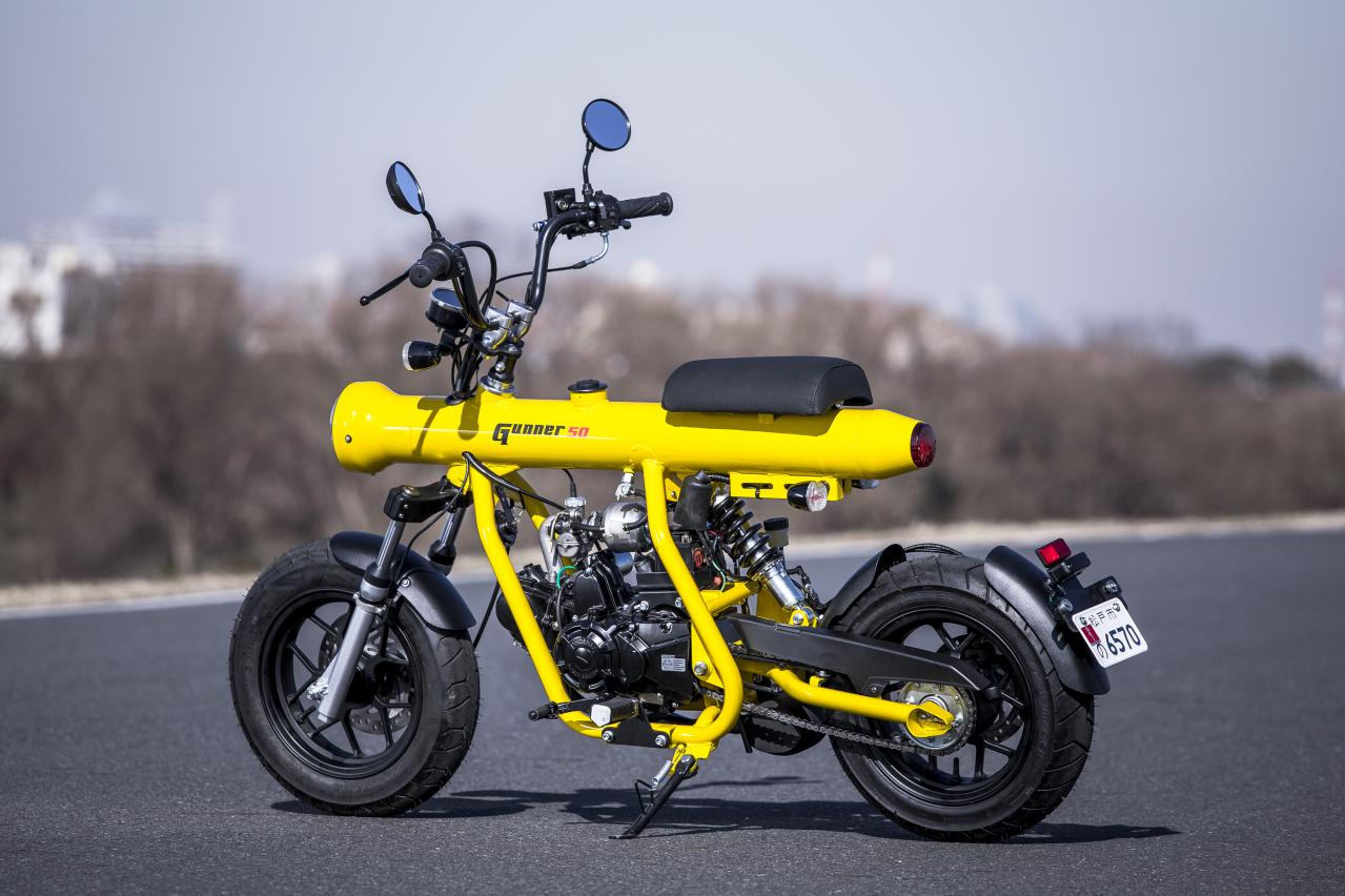 PHOENIX ENGINEERING Gunner 50在外型上使用和HONDA Dax極為類似的長筒狀設計,外型看上去就像是一支火箭筒一樣,車頭有著像是手電筒一樣的圓燈設計、4.5L油箱隱藏在長筒車身內、車尾則以收束的車尾燈點綴,創造出流線、極簡的車身線條。