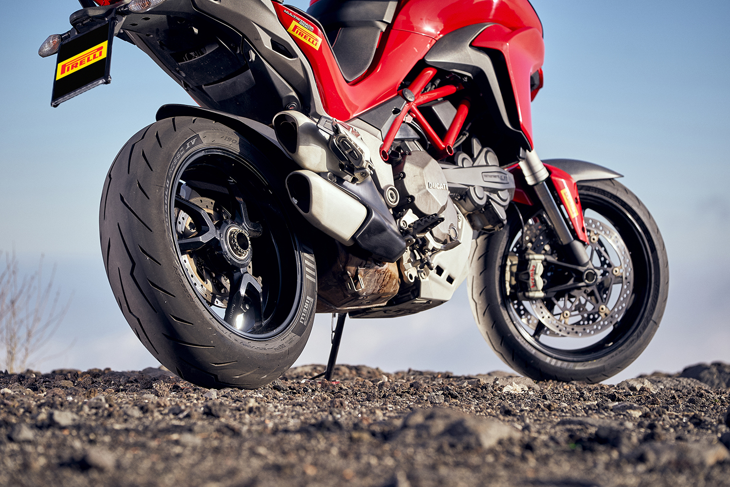 其餘的後輪尺寸(最高190/50 ZR 17)採用人造絲結構,比其前身剛性更高。這種類型的胎體類似於前輪結構,為橡膠混合時預留更多的空間,以便更好地沿著其胎型調節剛性。前、後胎結構的組合可與最先進的電子控制系統完美配合,傳遞給騎士更多安心與精確操控手感。