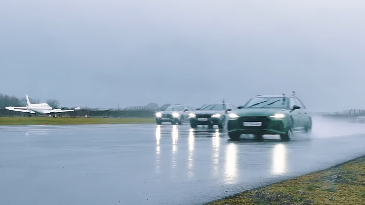 當今四驅系統的搭載早已不局限於休旅車,也鮮少真正應用在越野用途,而是成為增添安全性或強化操控性的利器之一,特別是不少高性能車款現也以四驅設定為主流。英國媒體Carwow近期召集Audi RS6 Avant、BMW M5 Competition及Mercedes-AMG E63 S三輛輸出皆在600hp以上、且採四驅配置的性能猛獸,在雨中來場刺激的直線加速賽拚勝負!