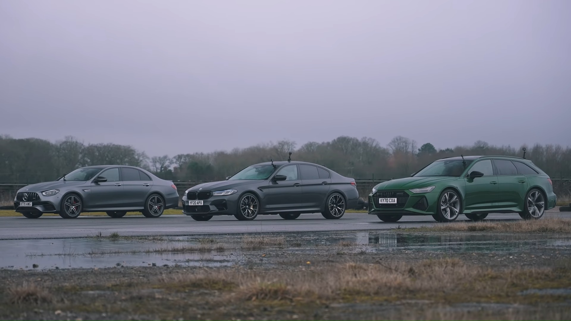 從帳面數據來看,RS6 Avant的最大馬力居三者之末,車重則居三者之冠,因此馬力重量比是三車最高者,先天條件略顯不利。然而,「雨天」這項因子卻成了RS6 Avant翻轉致勝的關鍵!影片中可以看到RS6 Avant在三趟測試中皆於起跑時拔得頭籌,且一路領先衝過終點線奪下勝利,看得出Audi的Quattro四驅系統對抑制車輪打滑及扭力分配相當有一套,於濕地展現強大的循跡性!