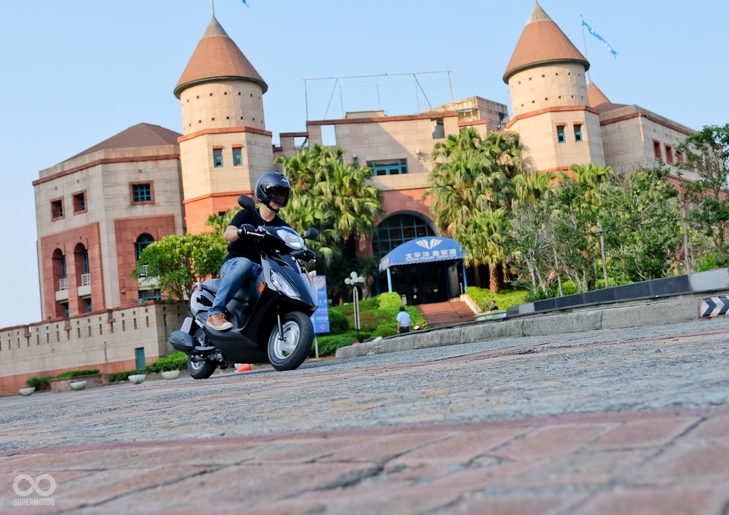 勁豪是一台為了通勤而生的車,我們就以通勤者的使用狀態體驗這台車,發動引擎發現待速設定相當低,起步轉速拉升的震動稍微明顯,但整體引擎運轉質感細膩平穩,讓騎乘感受依然滑順舒適。充足順暢的動力輸出使油門操控輕鬆,雙載時也顯得力頭飽滿,而溫和的加速感也帶給後座相對的安心感;操控上受惠於全車輕量化,與短拖曳距、小前傾腳的設計,轉向輕鬆靈活,處理市區常見的低速小彎相當得心應手;行經不良路面時只有舒服兩個字,行程加長的前後避震器,設定非常Q彈,能有效地吸收震動。