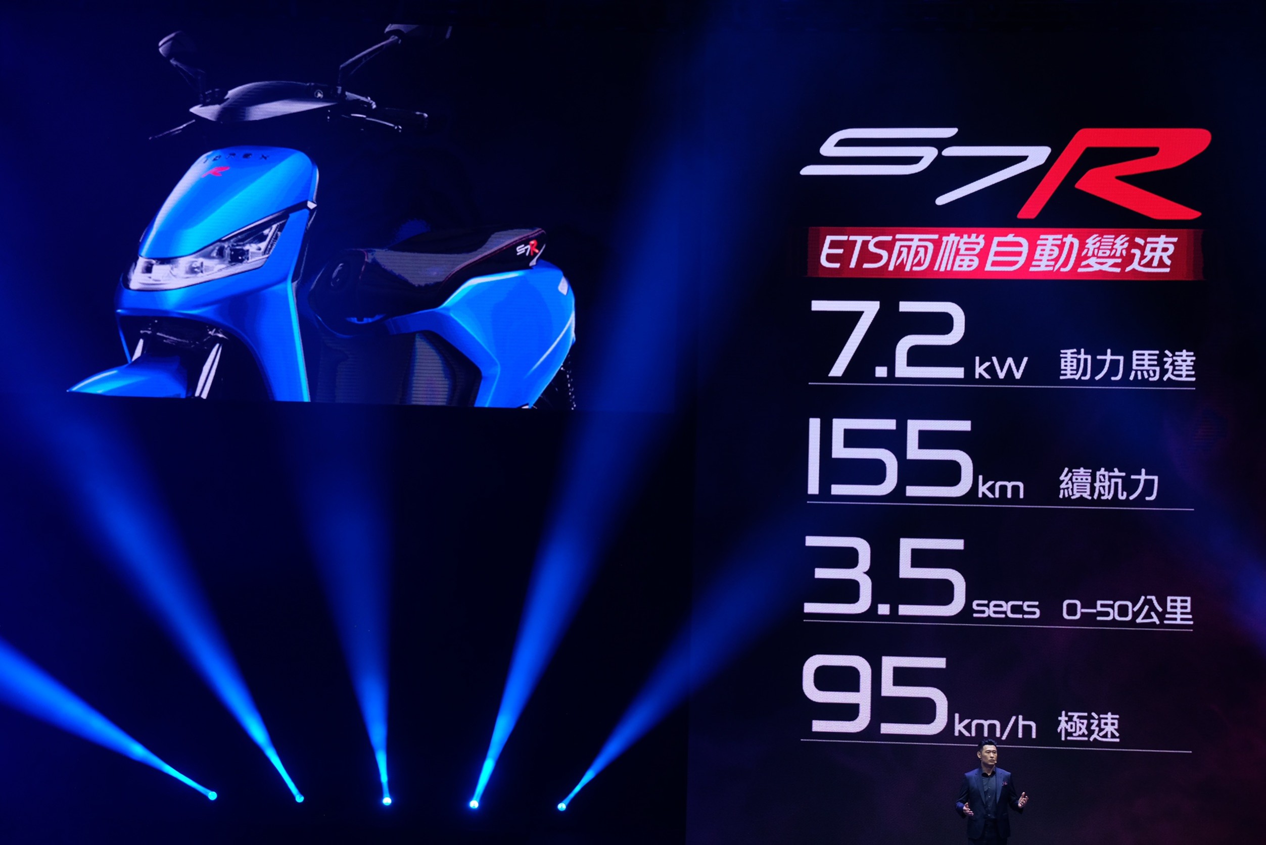 除了上面兩台比較入門的車款之外,KYMCO這次也帶來比較運動、熱血的S7、S7R兩台高階車款,兩台車都使用7.2kW馬達,S7R另外搭配ETS兩檔自動變速箱。