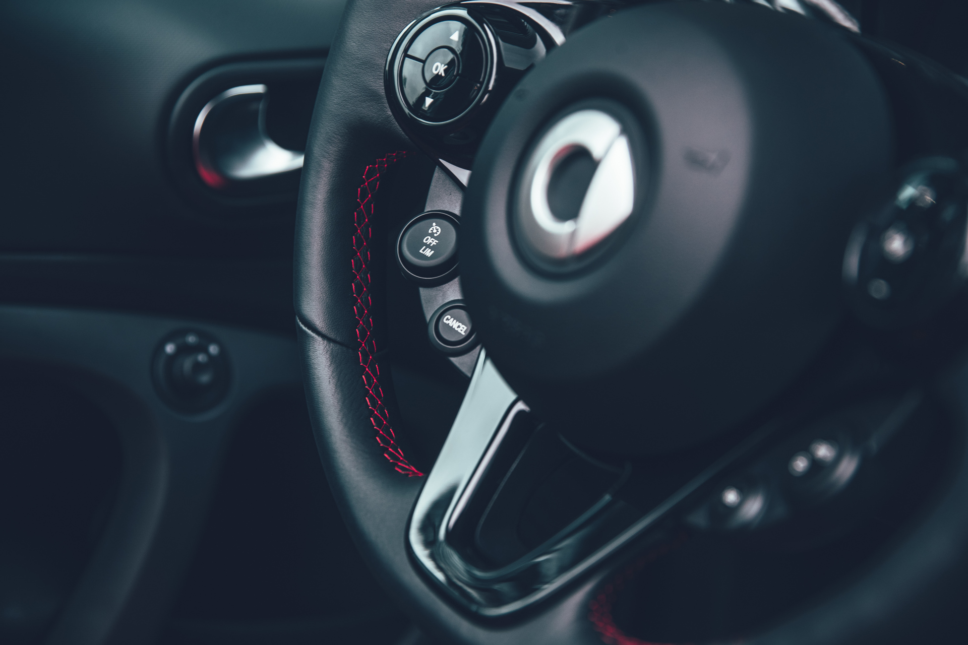 當你坐進駕駛座可發現Brabus所謂的駕馭樂趣選項,它可以讓你切換四種不同驅動模式,有Basic、Eco、Sport與Sport +,不同模式下可提供不同的電能回充時機,當你鬆開電門踏板,就能感受到電力回充力道。當然如果想要性能為先,那就選擇Sport+,不過電力消耗也是最快。Barbus表示,當在Sport+模式下,可爆發出92匹最大馬力,靜止加速到100公里/小時可在10.9秒內完成,而充滿電池的狀態下,可行駛達到125公里。