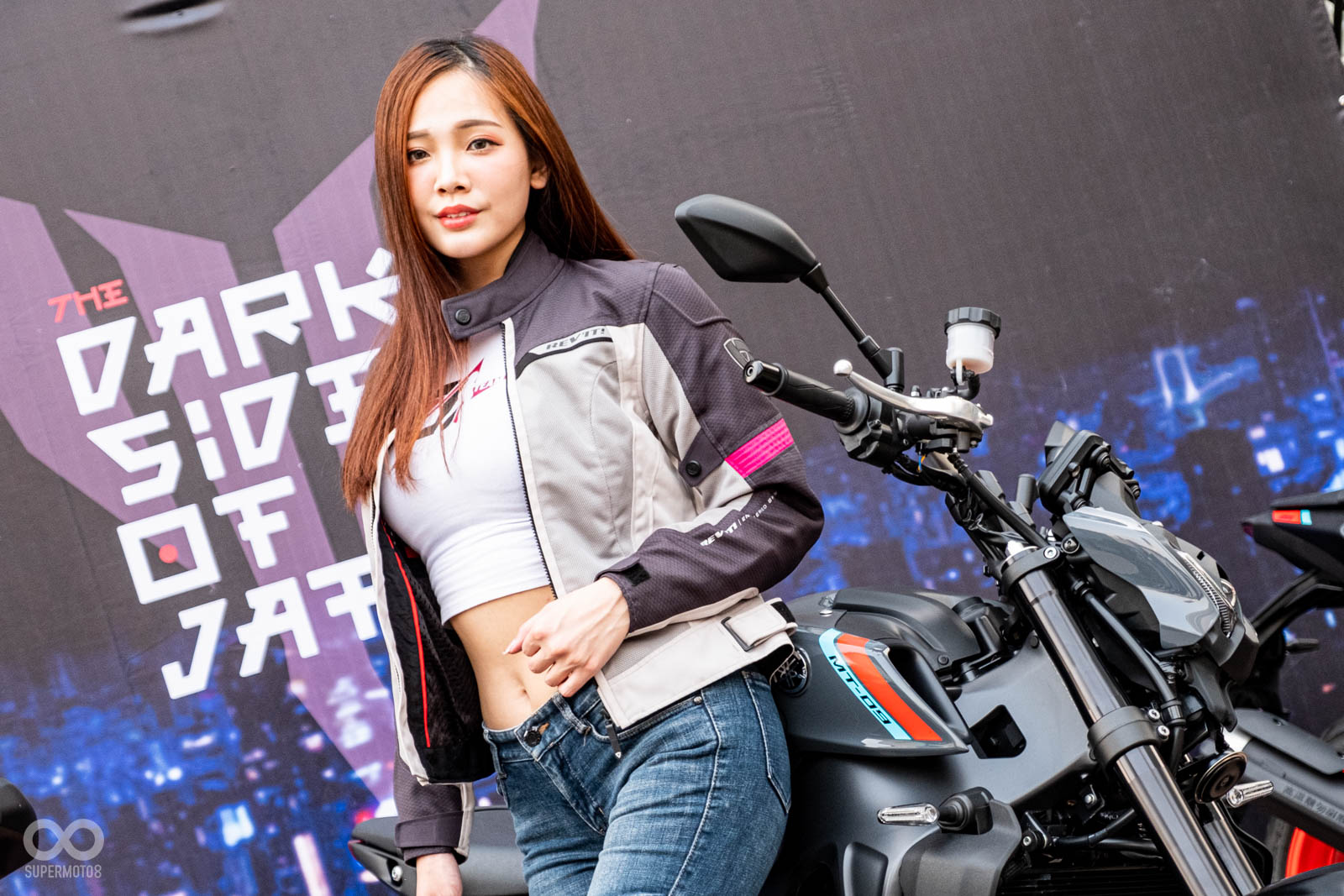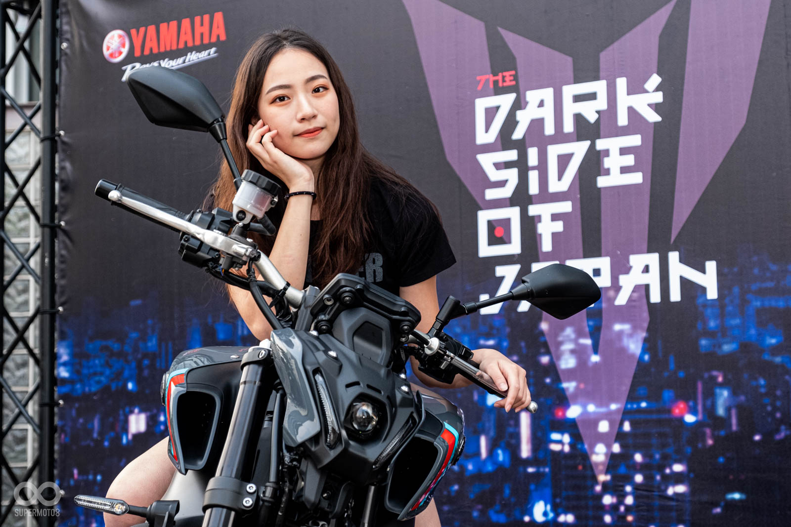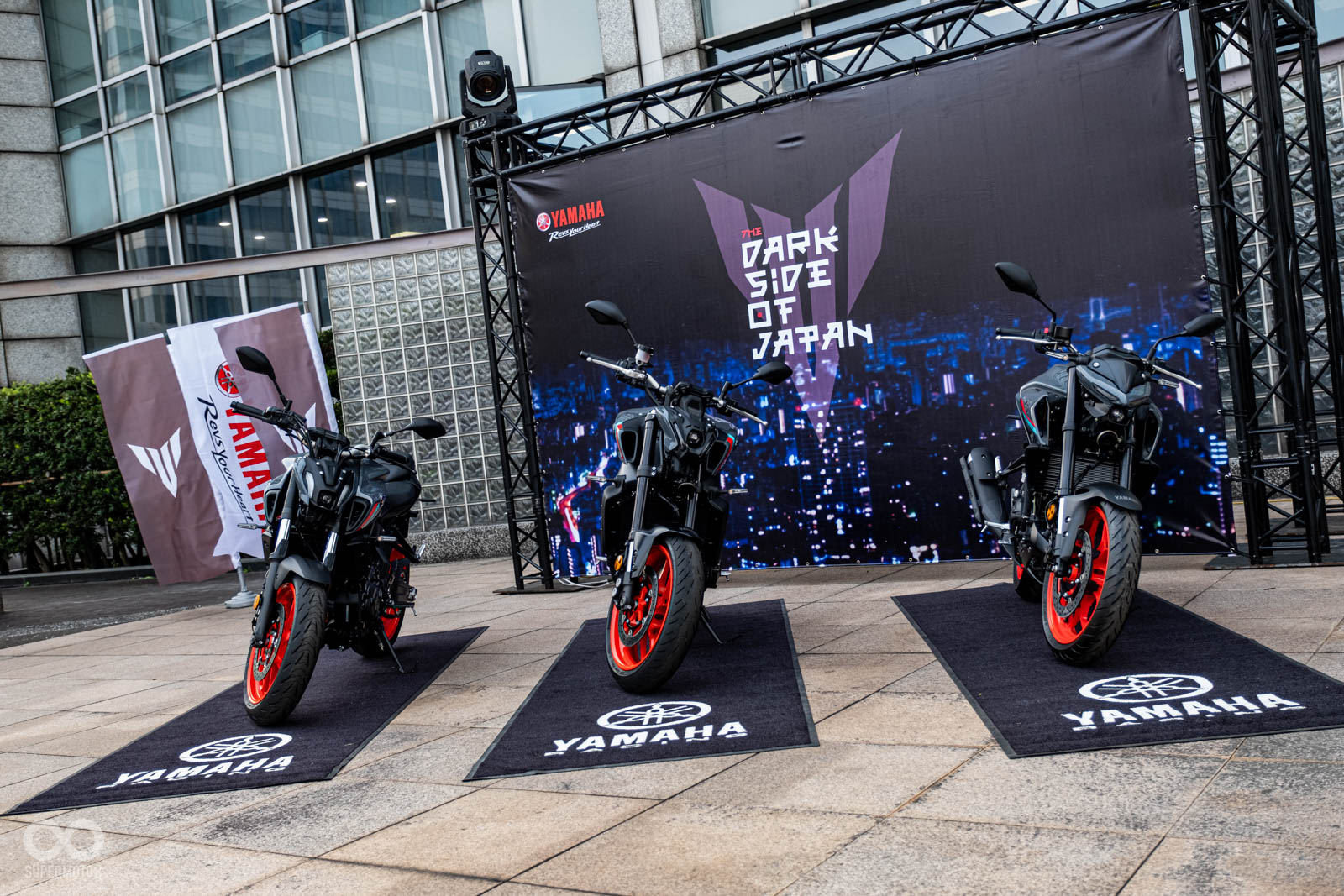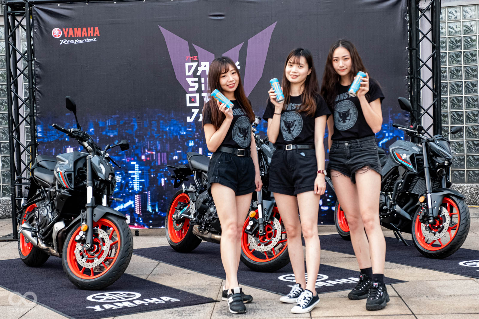 正後方則是有小小的舞台區,舞台上展示了2021年式的新款MT-09、MT-07以及MT-03三台MT家族車款,不少車友也利用這個機會近距離賞車、跨坐。