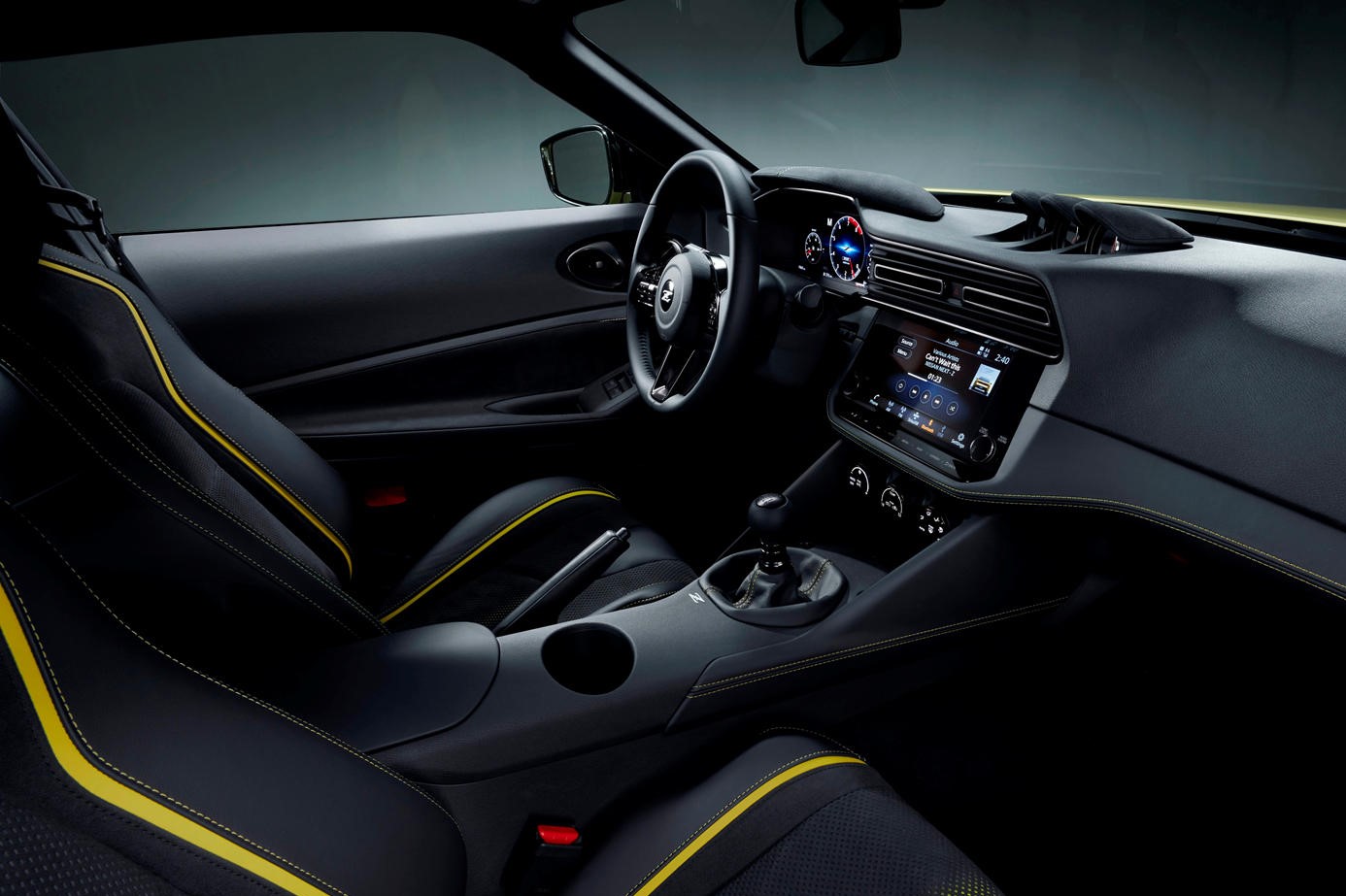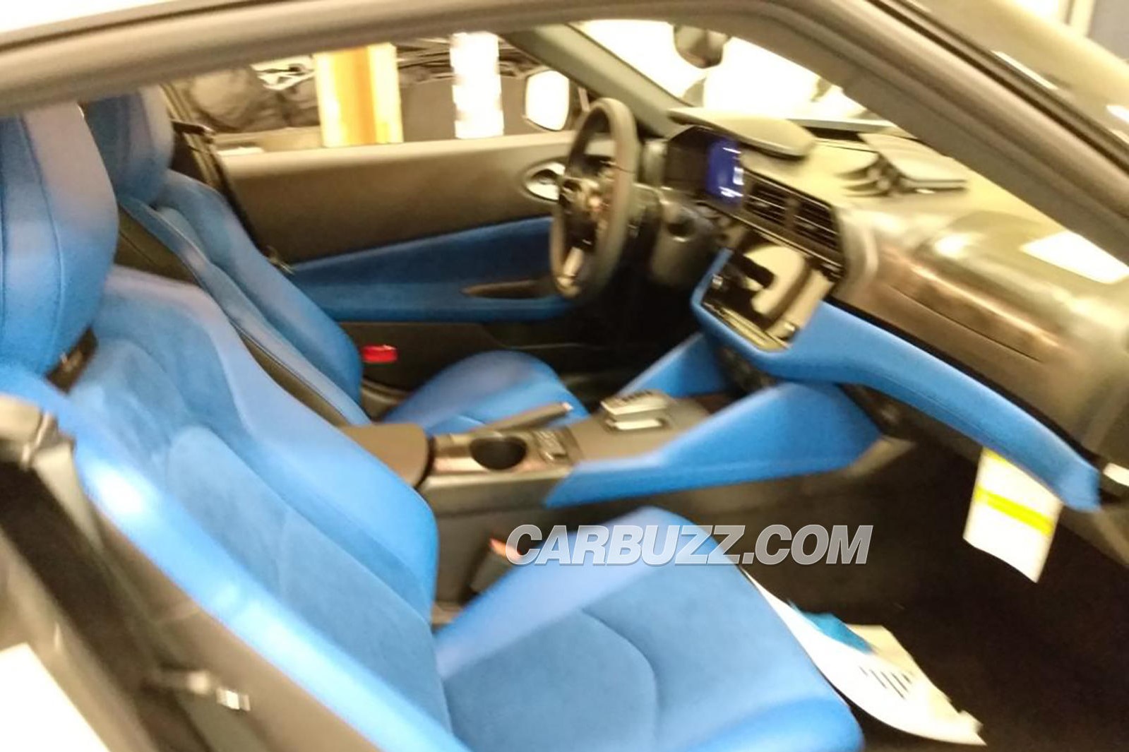 儘管照片模糊,但不難發現內裝同樣承襲概念車的架構,並採用相當大膽鮮豔的配色處理,主要差別之處在於中央的空調出風口變得「傳統」一些,還有採按鍵操作的自排排檔座。不過別擔心,手排變速箱依然會是量產Z的選項之一。除此之外,概念車搭載的專屬Z方向盤、實體三環錶、12.3吋數位儀錶及9吋多媒體觸控螢幕等,預計都能在量產版上見到。