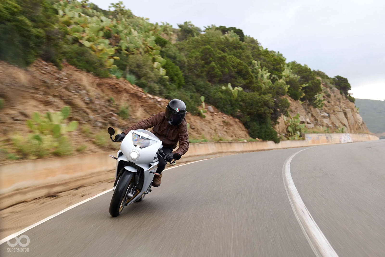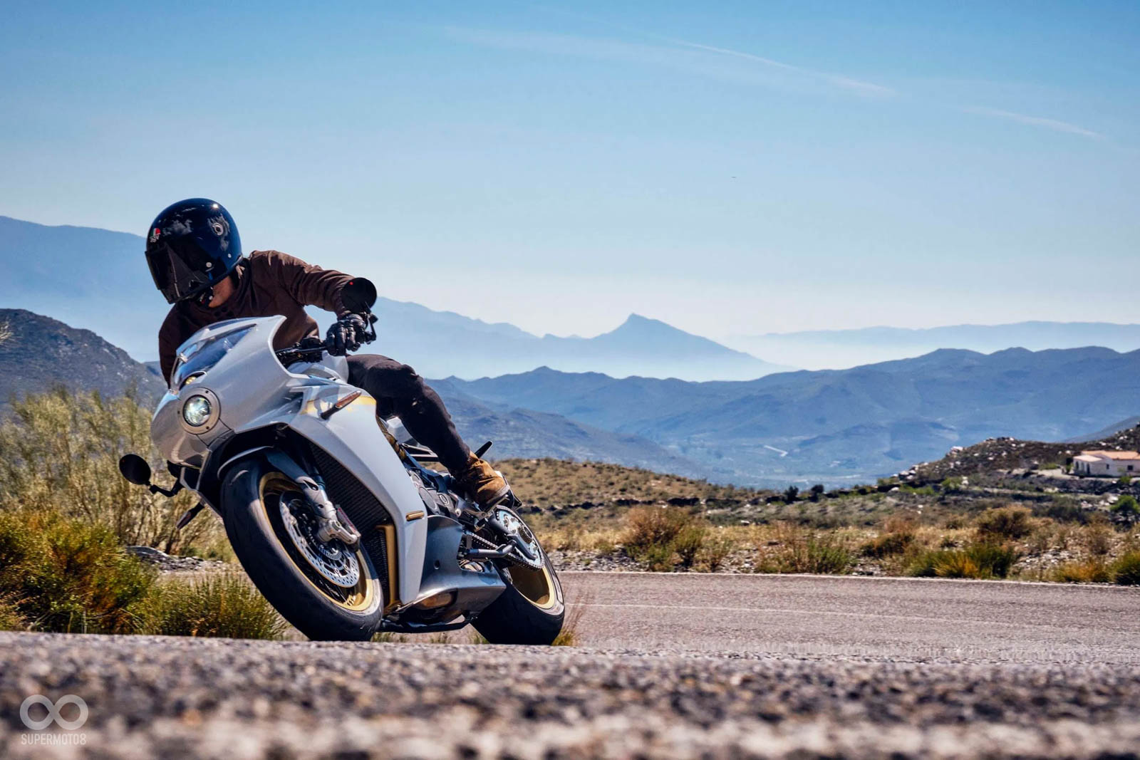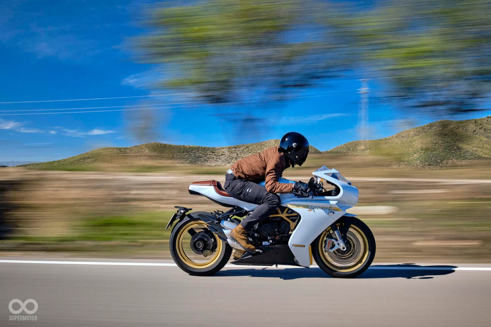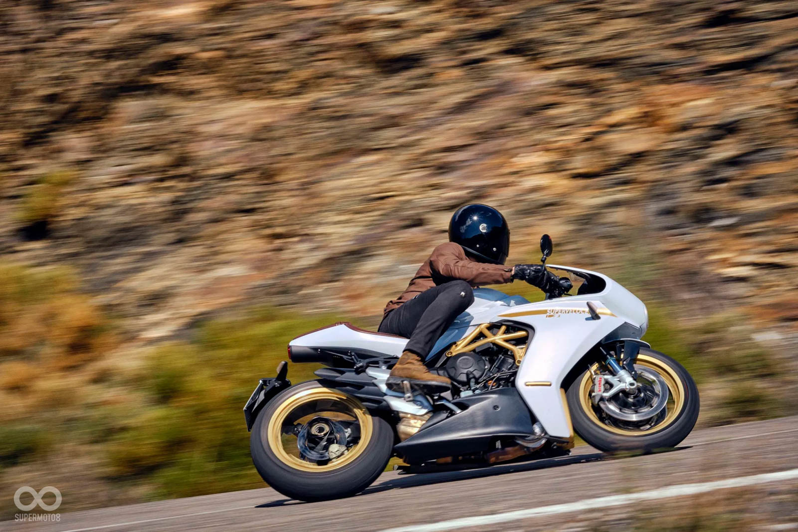 坐墊使用棕色的Alcantara麂皮打造,另外MV AGUSTA還有推出單座蓋的Race套件,能讓Superveloce S瞬間變身Cafe Racer;輪圈換上美到令人窒息的無內胎鋼絲框,整台車散發著極為濃郁的復古風味。