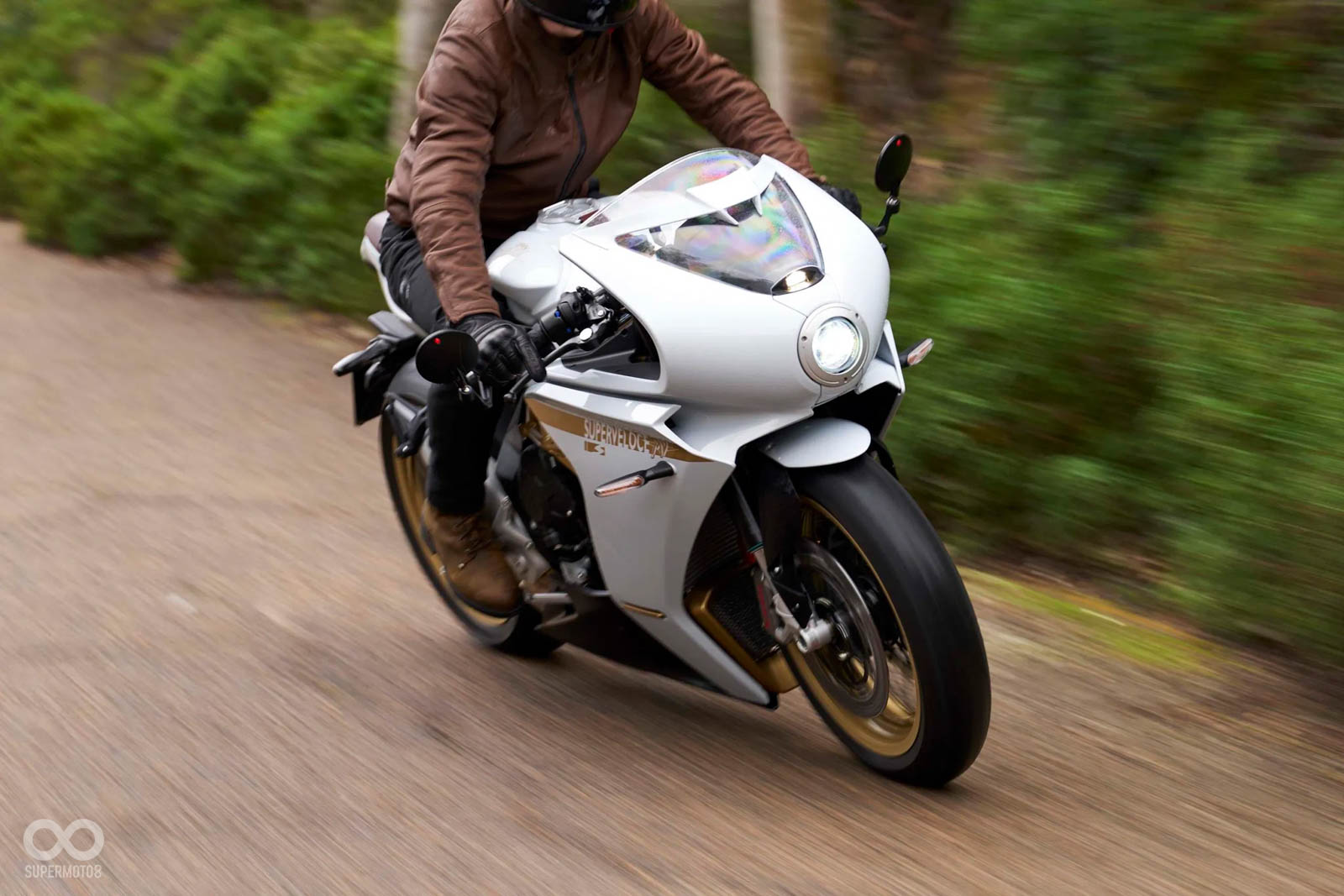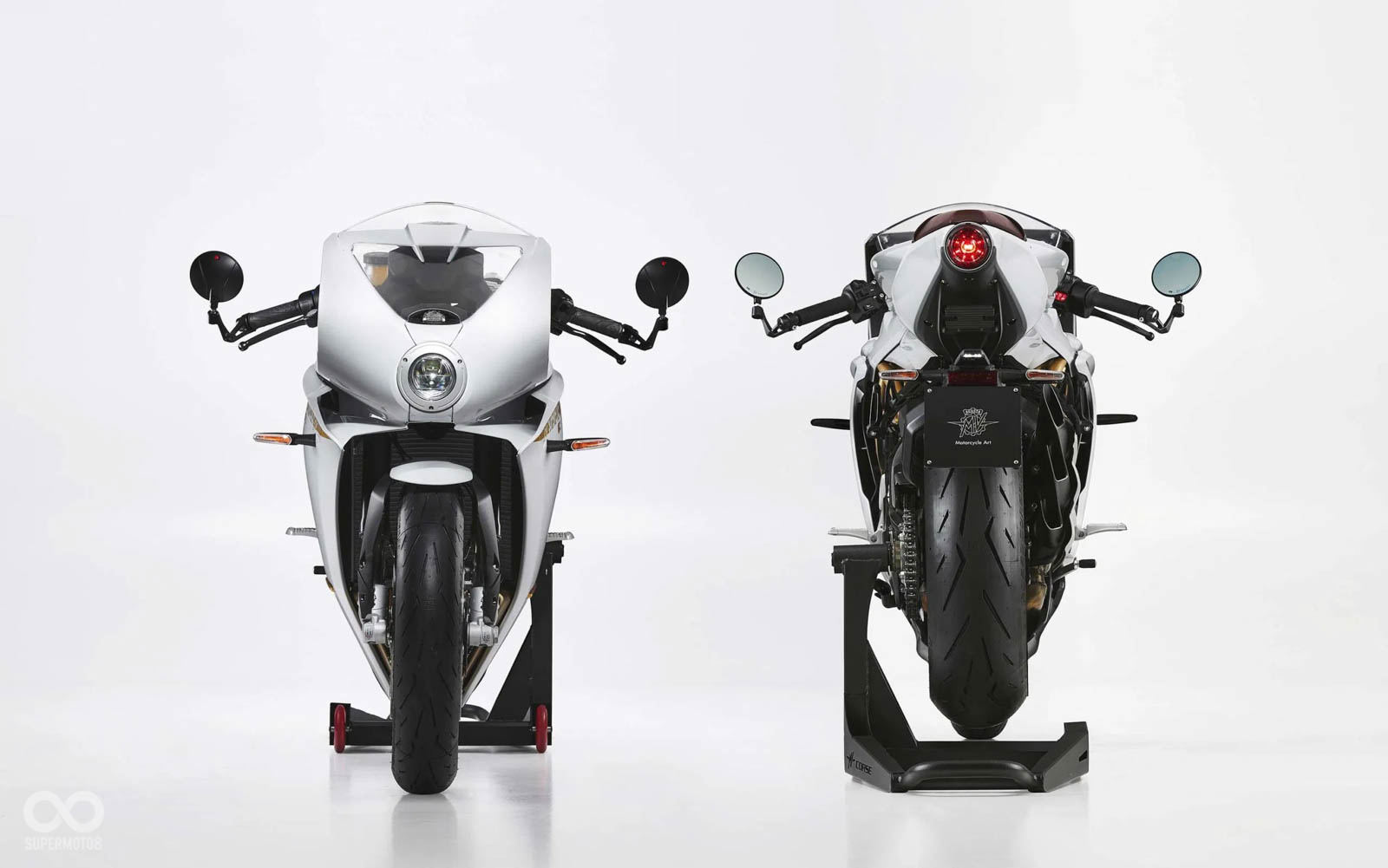 此外,MV AGUSTA今年更帶來全新的Superveloce S的新車型,Superveloce S和一般版本主要的差異,在於外觀採用珍珠白烤漆配金色的車架,車身上的彩繪字樣、鋼絲框輪圈也同樣使用搶眼的金色呈現,珍珠白和金色的組合讓Superveloce S顯得低調又貴氣。