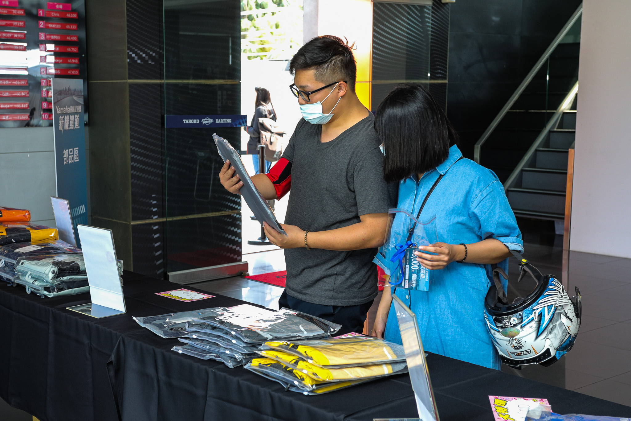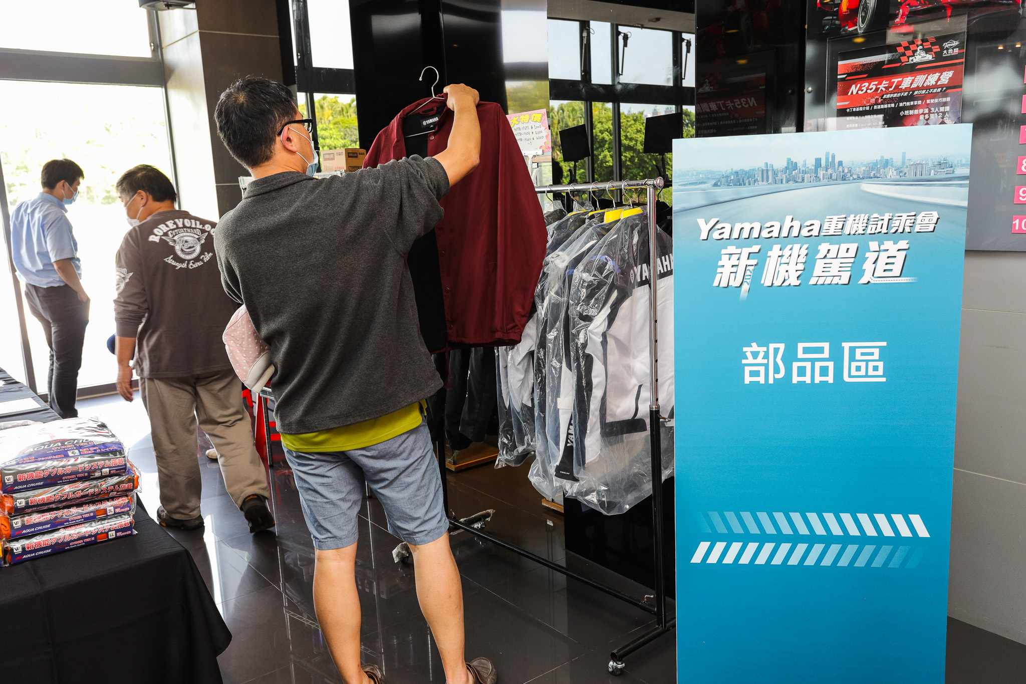 YAMAHA在大魯閣卡丁車場的室內擺設了原廠部品販售區,帶來許多相當帥氣的YAMAHA原廠人身部品、原廠商品如YAMALUBE機油等,販售的品項非常豐富,也吸引不少試乘民眾選購。
