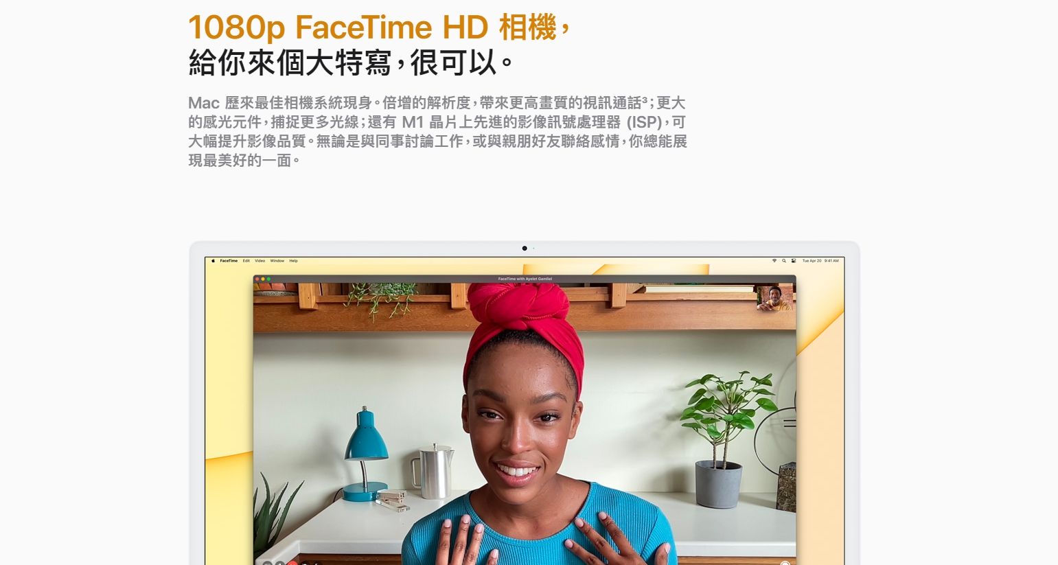 螢幕部分新的iMac透過縮減邊框的方式,讓螢幕尺寸從上一代的21.5吋加大到24吋,新的螢幕也具備P3色域、500nit亮度、True Tone原色,前鏡頭升級為1080p,並搭仔錄音室等級的三組麥克風;M1處理器也一併增強鏡頭的畫質解析和影像處理,新款iMac 的GPU更是直接性能翻番,速度比上一代提升50% 。