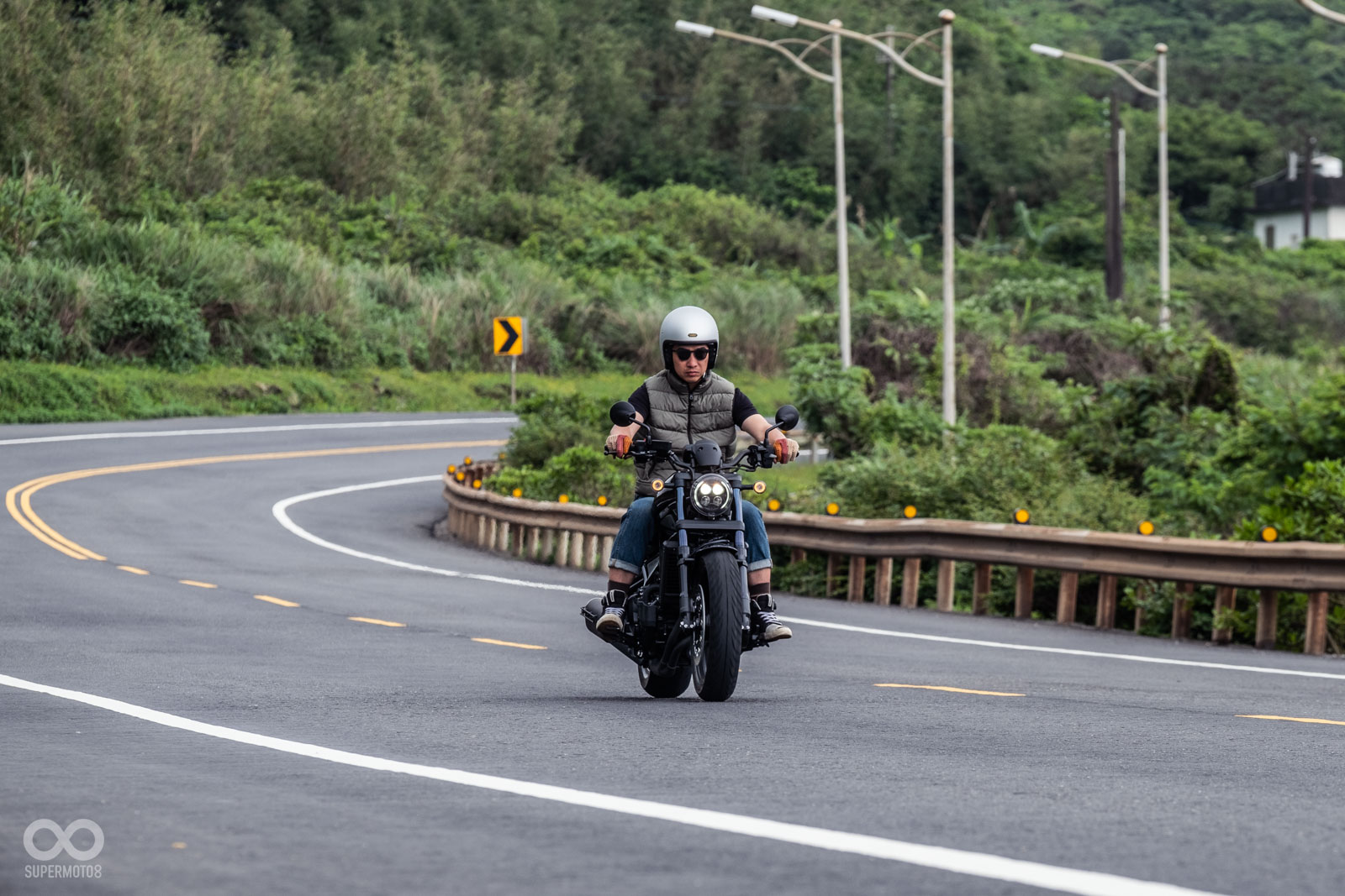今天試駕的北海岸幾乎都是筆直微彎的休閒路線,使用標準模式且油門轉動溫和的前提下,REBEL 1100會維持高檔位的巡航狀態,但當你大手油門需要超車時,雖然降檔反應稍嫌猶豫,不過檔位下降後依舊可以爆發出驚人的9.6kg-m扭力;假設切入SPORT模式,更高的轉速與靈敏的油門反應,更可以讓你享受絕佳的騎乘樂趣,單就動力表現來說絕對符合你的預期,消失的些許馬力或許不是你需要在意的重點。