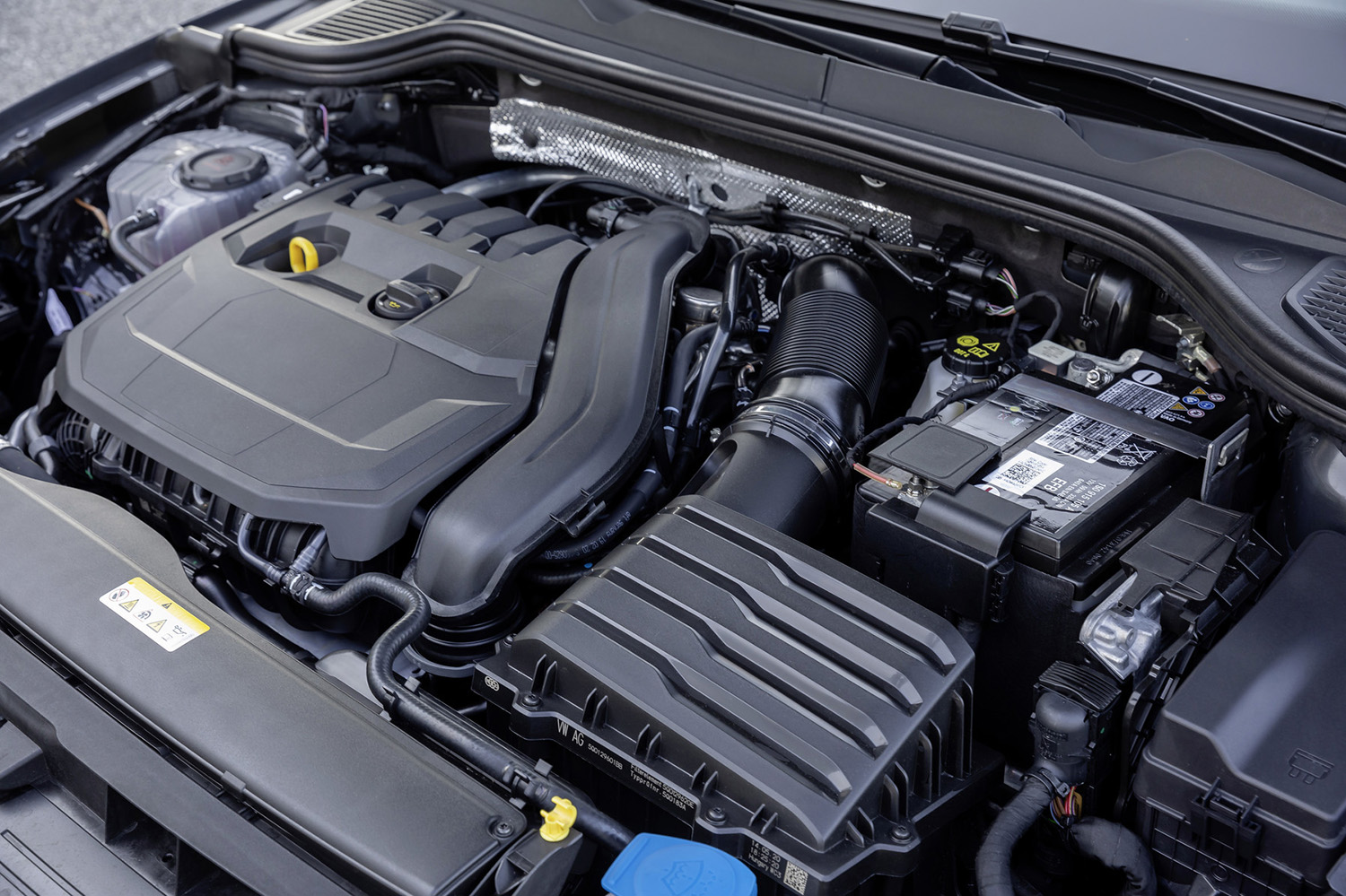 Volkswagen持續往WayToZero零排放量的目標前進,致力提升節能效力與油耗表現,台灣福斯汽車首次於國內引進eTSI引擎,以豪華品牌規格的48V輕油電動力系統帶來全新驅動型態,此系統由輔助馬達帶動皮帶將動力傳導給引擎,在渦輪尚未全速運轉時提供起步與低速時的輔助驅動,達到節省車輛啟動時所需消耗的大量動力,而Electric Boost電動馬達輔助,可為引擎帶來多達9kW的動力輸出和50Nm扭力,經由48V輕油電動力系統的輔助,可縮短25%的時間來達到相同扭力數值。