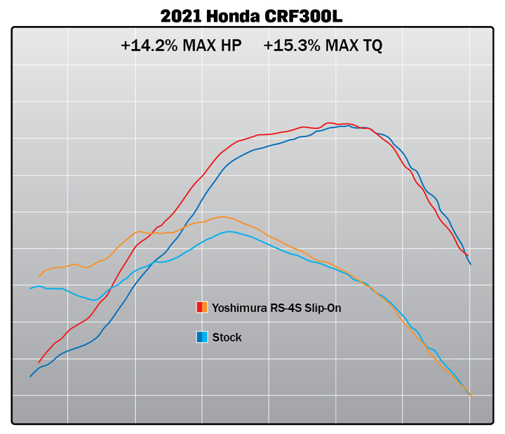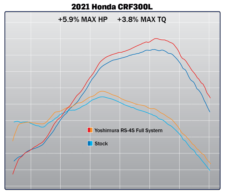 本次Yoshimura總共推出兩版本排氣管提供消費者選擇,分別為全段、尾段兩種選擇。全段排氣管當地售價為619美金,馬力提升5.9%(hp)、扭力提升3.8%,大家可以注意到在全段管的馬力扭力曲線圖,改裝後幾乎都是從低轉到高轉穩定上漲,帶給騎士更大的動力表現。