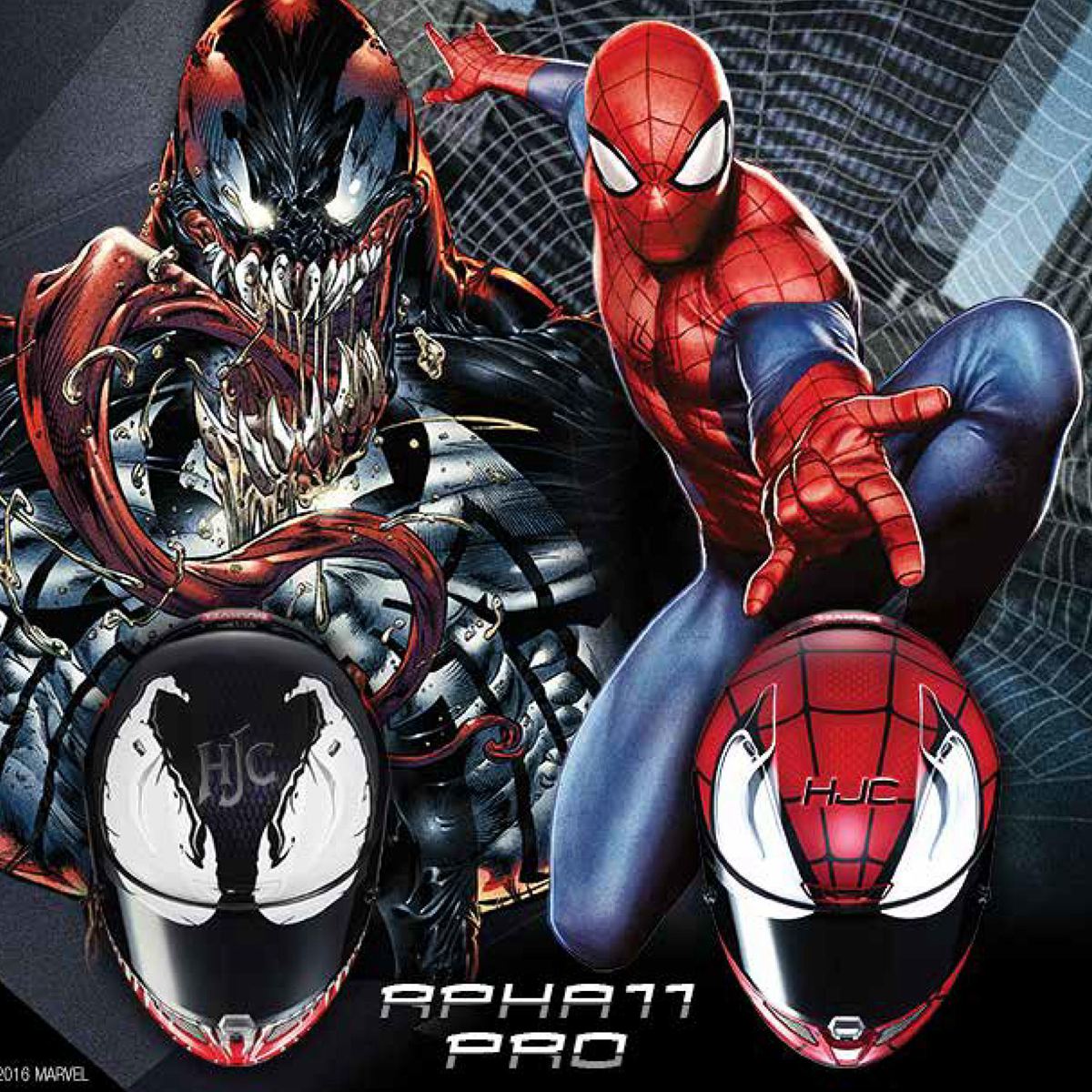 韓國安全帽大廠HJC先前就曾與Marvel聯名,推出第一波以內戰兩陣營領袖美國隊長、鋼鐵人,與反派制裁者三組彩繪,蔚為話題,HJC也看準這波蜘蛛人商機,趁勢推出聯名款第二彈Spiderman與死敵Venom彩繪,HJC這回特別選用頂級帽體RPHA 11 PRO作為素材,更添收藏價值。