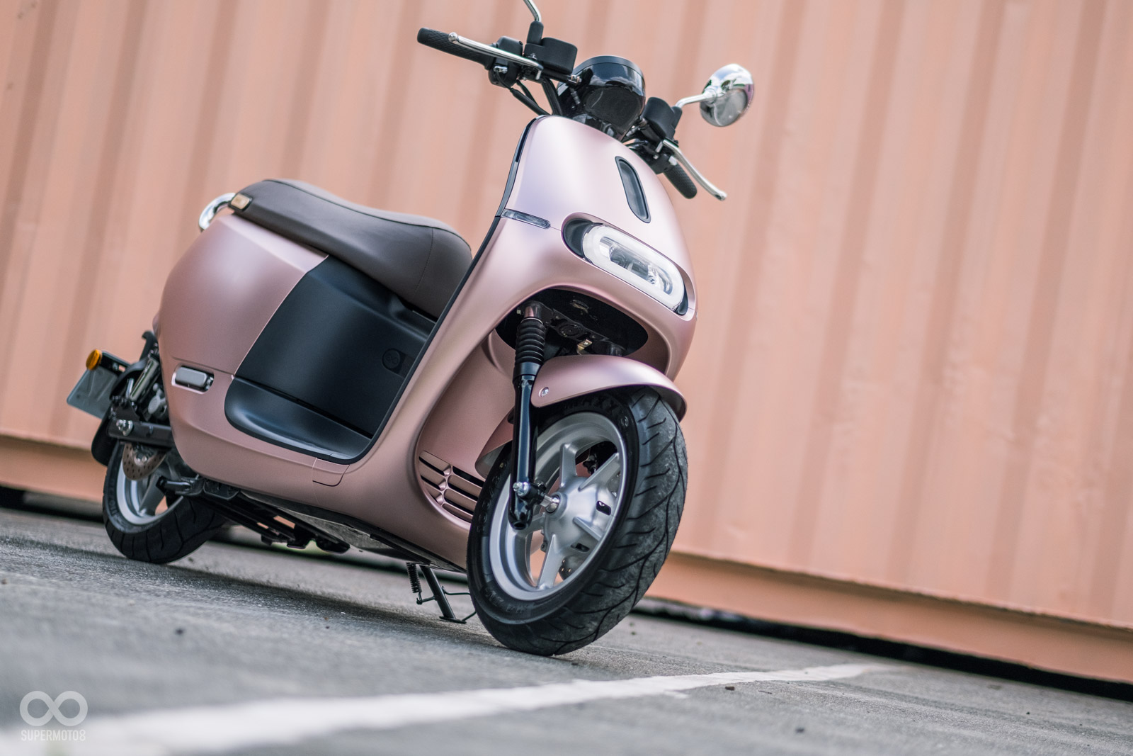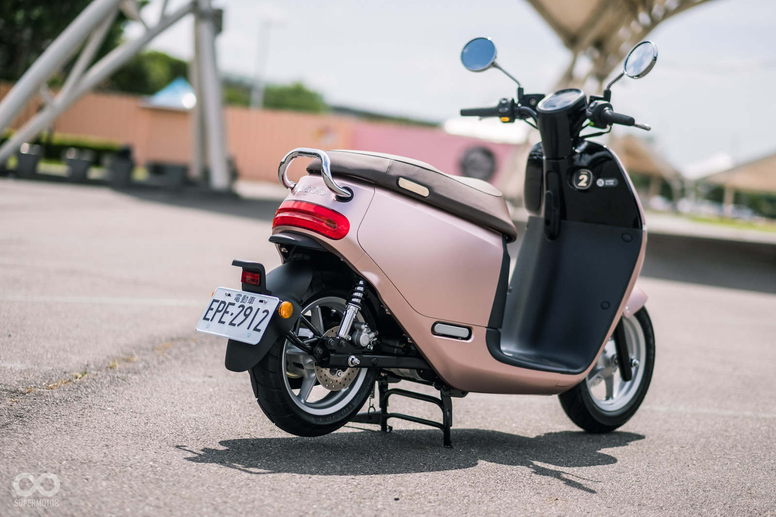 全車上大量的鍍鉻件也帶給Delight更奢華的質感,像是後扶手、雙槍後避震、煞車拉桿和後照鏡等部位都給人閃閃發光的感覺,坐墊尾端側面也能看到玫瑰金色的銘牌。