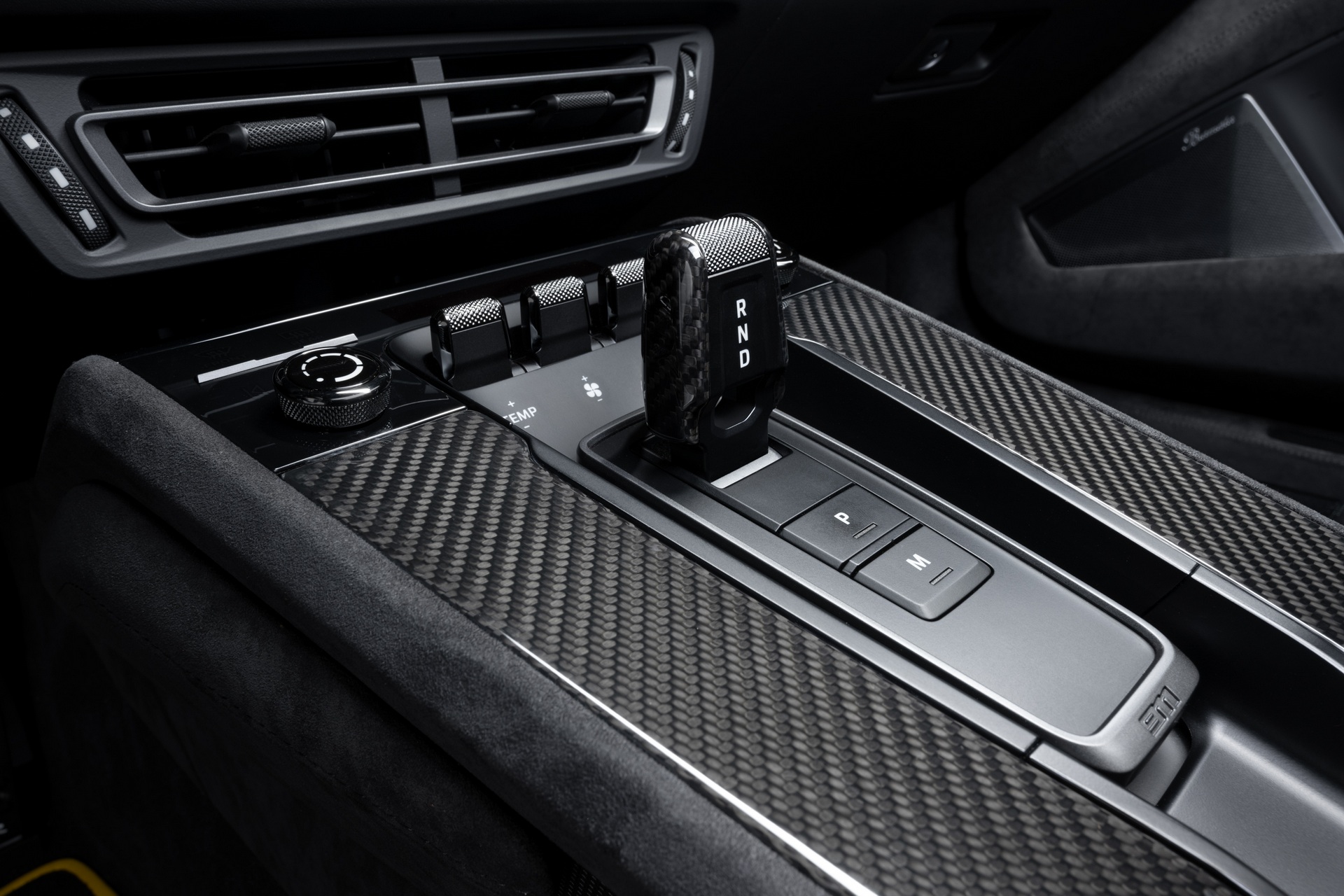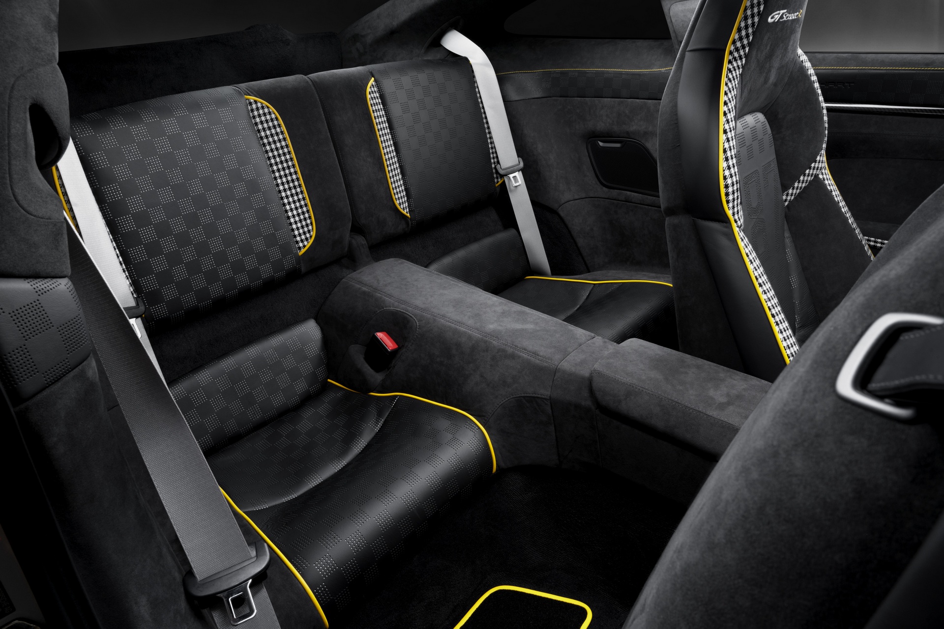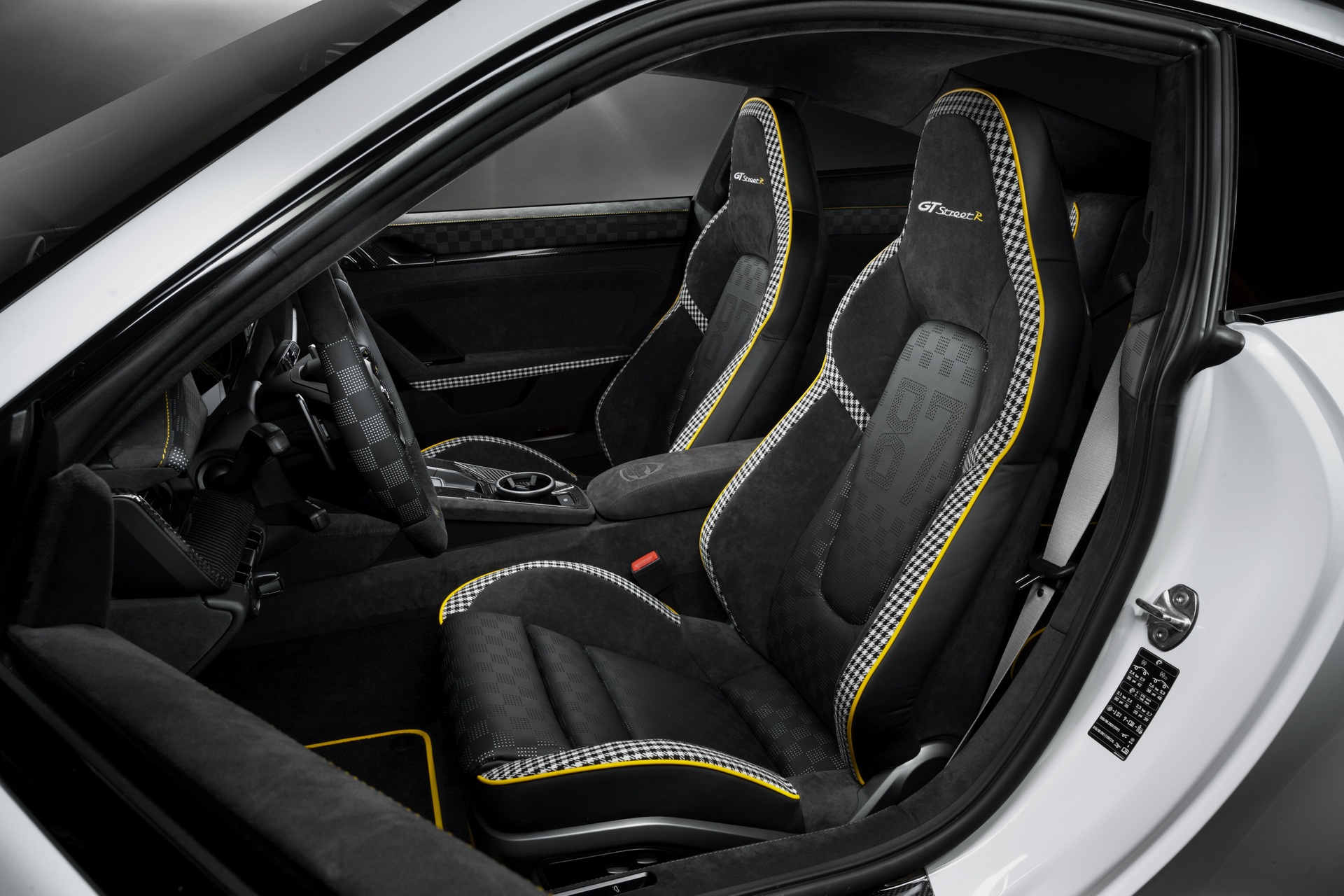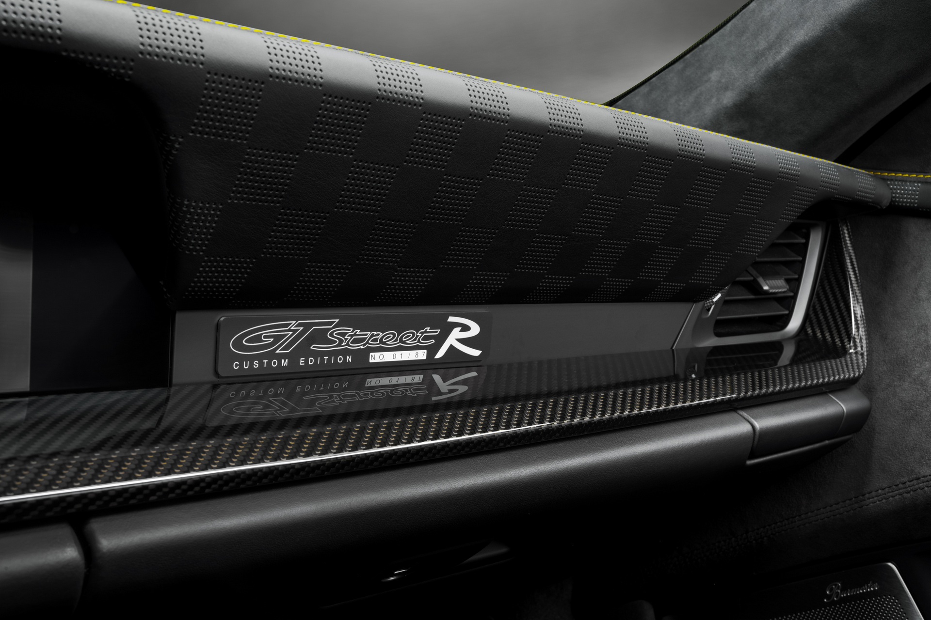 底盤升級目前只換上運動化彈簧,能降低車身高度25mm,之後TechArt會推出可選配的Clubsport Package套件,這是專門為賽道所設計,包含一組可調整高低、軟硬的避震器、性能化賽座椅以及防滾籠等。標準版車內使用大量Alcantara麂皮、真皮及碳纖維材質的混搭風格,大膽使用復古方格圖案和GTstreet R的標誌,當然每輛TechArt GTstreet R都可過官方的選項進行客製化,以匹配每位消費者的個人品味。
