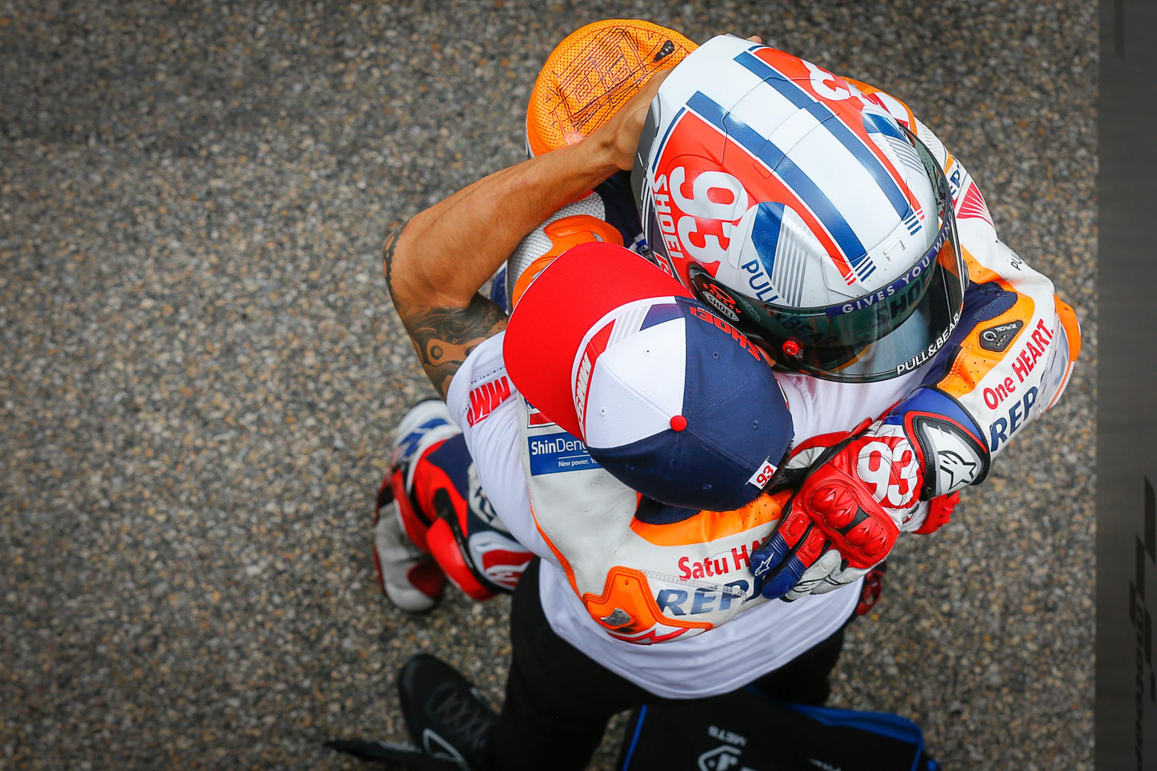 「我依然不知道該如表達我的感受,」Marquez在喜悅與淚水交織下接受訪問,「我這一年來過得很艱辛,當然,很多人都幫助我回到比賽,醫生、HONDA、我的家人以及我的團隊,我沒有辦法獨自一個人脫離這種痛苦,這對我還說是一場重要的勝利,對HONDA而言也是如此,因為我們幾乎放飛了一整年,我們必須要加油。」