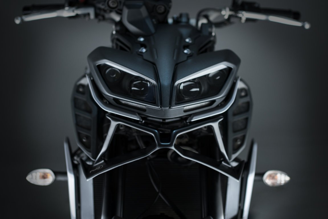 Puig這次推出的產品不同於DUCATI或MV AGUSTA在街車車側裝上誇張的空氣力學套件,而是將翅膀裝在MT-09頭燈下緣,改裝完後的MT-09彷彿在原先低扁雙眼下方,多了一撮個性的小鬍子;這組套件由3mm ABS塑料材質打造,外觀使用低調消光黑對應DARK SIDE OF JAPAN車款精神,最重要的是這組翅膀為直上套件,你可以輕鬆在自家車庫完成安裝!