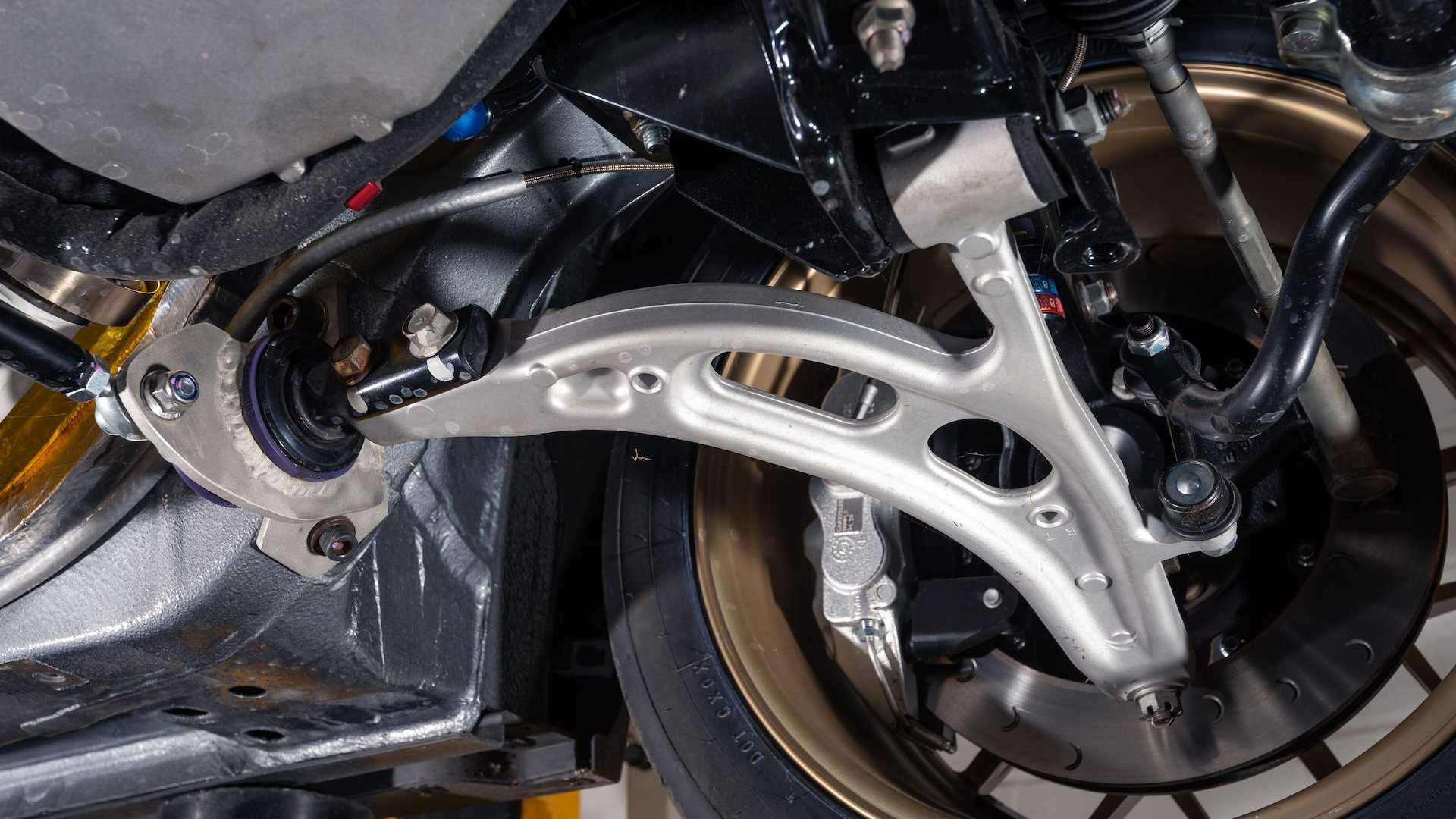 這顆V8自然進氣引擎來自於自家集團當家性能車,原廠代號E90、E92 M3所搭載的S65 4.0升 V8自然進氣引擎,該發動機最大馬力可輸出414匹,設定相當保守,畢竟引擎室不大、散熱不易,再加上MINI車身輕巧,無須調校過大出力。變速箱維持七速雙離合器,並經過縝密研究,完整度極高的把後驅配置一並沿用。另外,因為要容納傳動軸以及排氣管,車身底板(與剛性無關之處)使用Subaru WRX STI結構,這樣在車底才有空間容納傳動軸與排氣管。除此之外,前懸吊的下三腳架也一併改用WRX STI鋁合金部品,完整度無任何問題。
