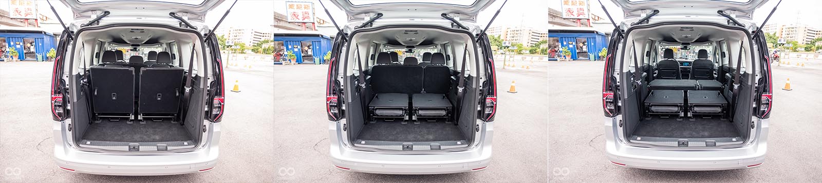 以七人座車款來說,雖然CADDY MAXI可能不是最奢華、質感最好的選項,超大空間絕對是喜歡這台車的另一大特點,首先第二排、第三排全數可以免工具拆卸,但可不要低估座椅重量喔!第二排也可以往前翻摺獲取突如其來的載貨需求。