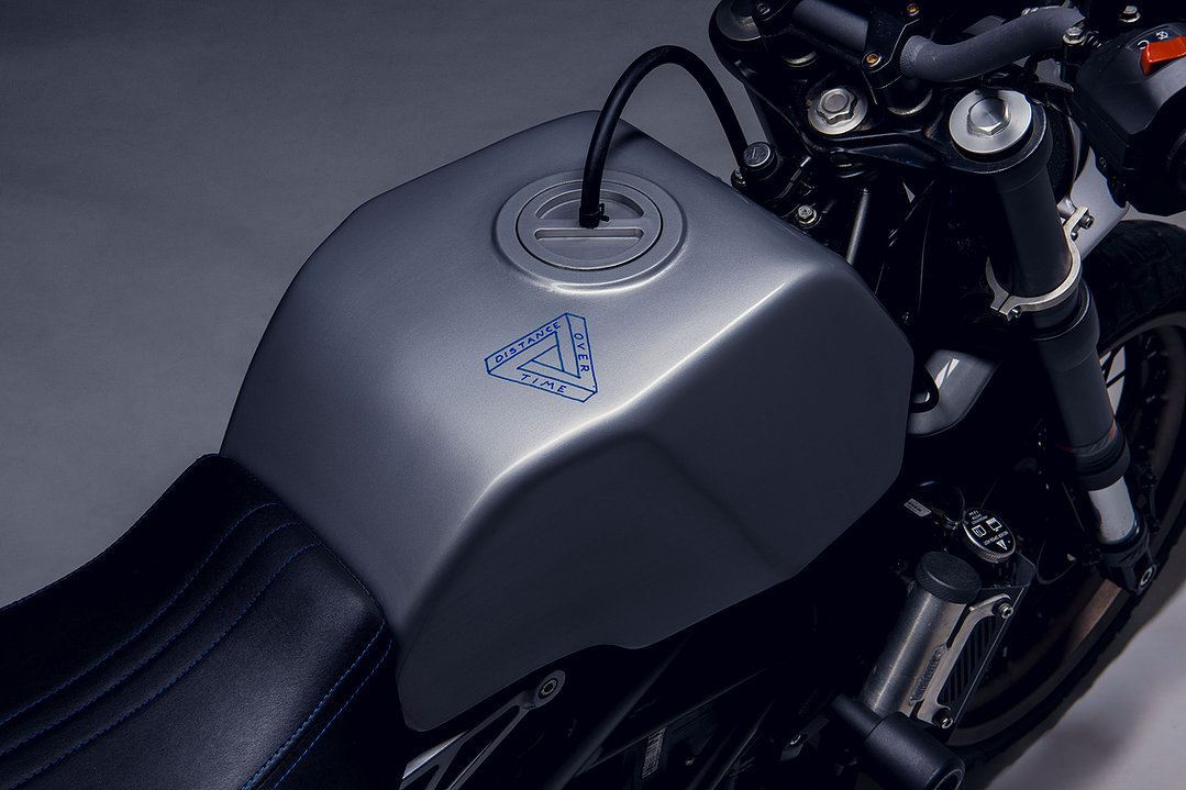 外觀部分最吸引目光的應該是金屬色的方正油箱,安裝於車上可是克服困難後,打造出的第四顆完成品,高且短的獨特設計成為全車的視覺焦點之一。