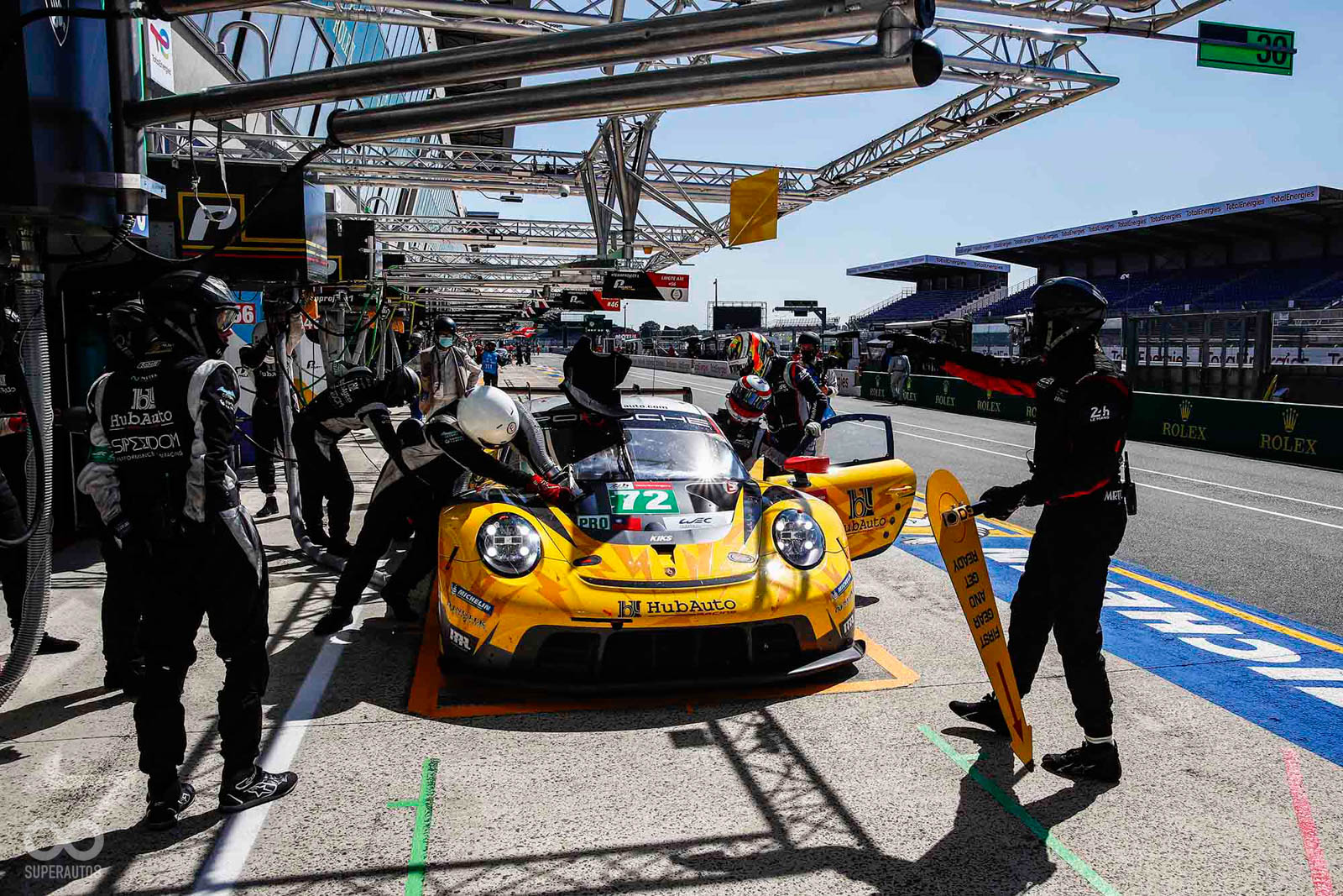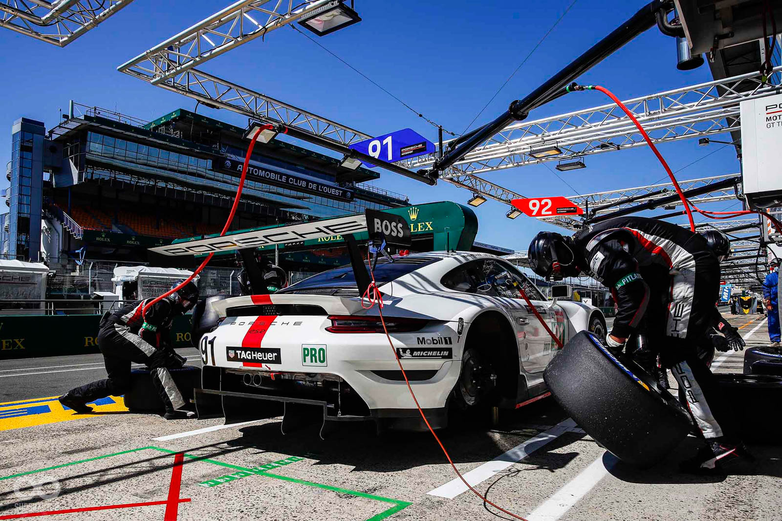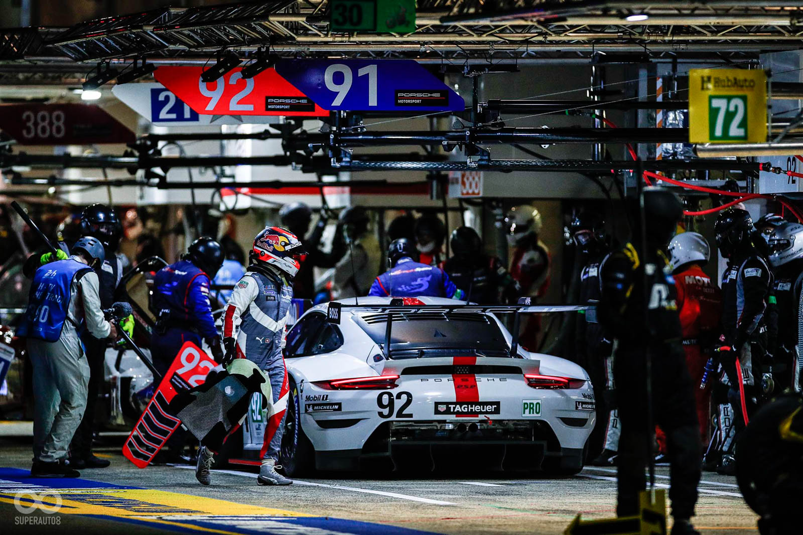 2020年9月20日周日,下午2點7分,在利曼24小時耐力賽(Le Mans 24 Hours)現場,保時捷車手Laurens Vanthoor駕駛保時捷 911 RSR,轉進維修通道。最後一次進站,僅僅數秒鐘時間,Manthey團隊為最大馬力為515 PS的92號賽車加滿油,清潔擋風玻璃,更新補滿車手水瓶,車子便回到路面,六缸水平對臥引擎轟然咆嘯,恢復活力後離開維修站。