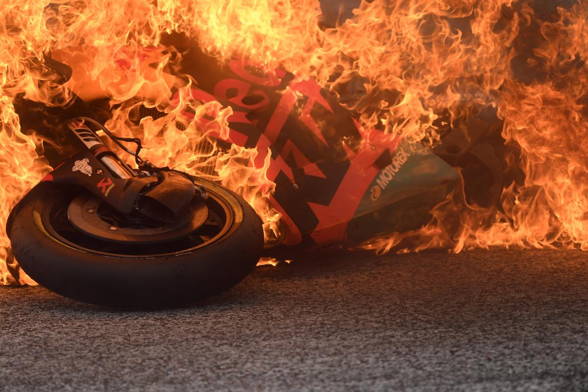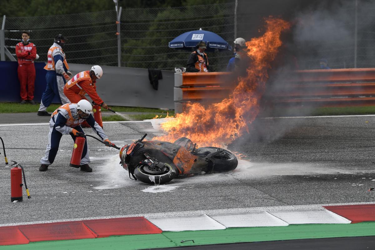 Dani Pedrosa在奧地利分站第一場的外卡復出之旅並不算順遂,在正賽起跑後不久Dani Pedrosa就在賽道上LowSide摔車,賽車還很不幸地停留在出彎路線上,導致後方的Aprilia車手Lorenzo Savadori閃避不及直接撞上,兩台賽車也在賽道上燃起熊熊大火,導致比賽出紅旗暫停。