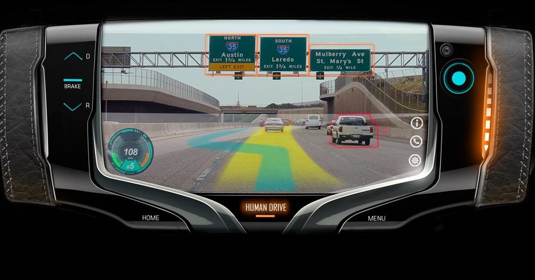 在這個方向盤上可以看到結合了所有操作的功能在內,甚至左邊的把手上看起來還是個油門與煞車控制的系統,右邊的把手點點可能還可以控制方向,這個方向盤可能根本就不是設計來可以轉動的,而就是固定在駕駛前面的一個面板兼把手,而大部分時間應該都是交由自動駕駛來處理,因為在這次的貼文當中有兩個模式,除了自動駕駛之外還有人類駕駛模式,但人類駕駛模式下還是會在螢幕上提供道路選擇,而且時速超過了160km/h,好吧,這個設計可能會在22世紀才會真的實現。