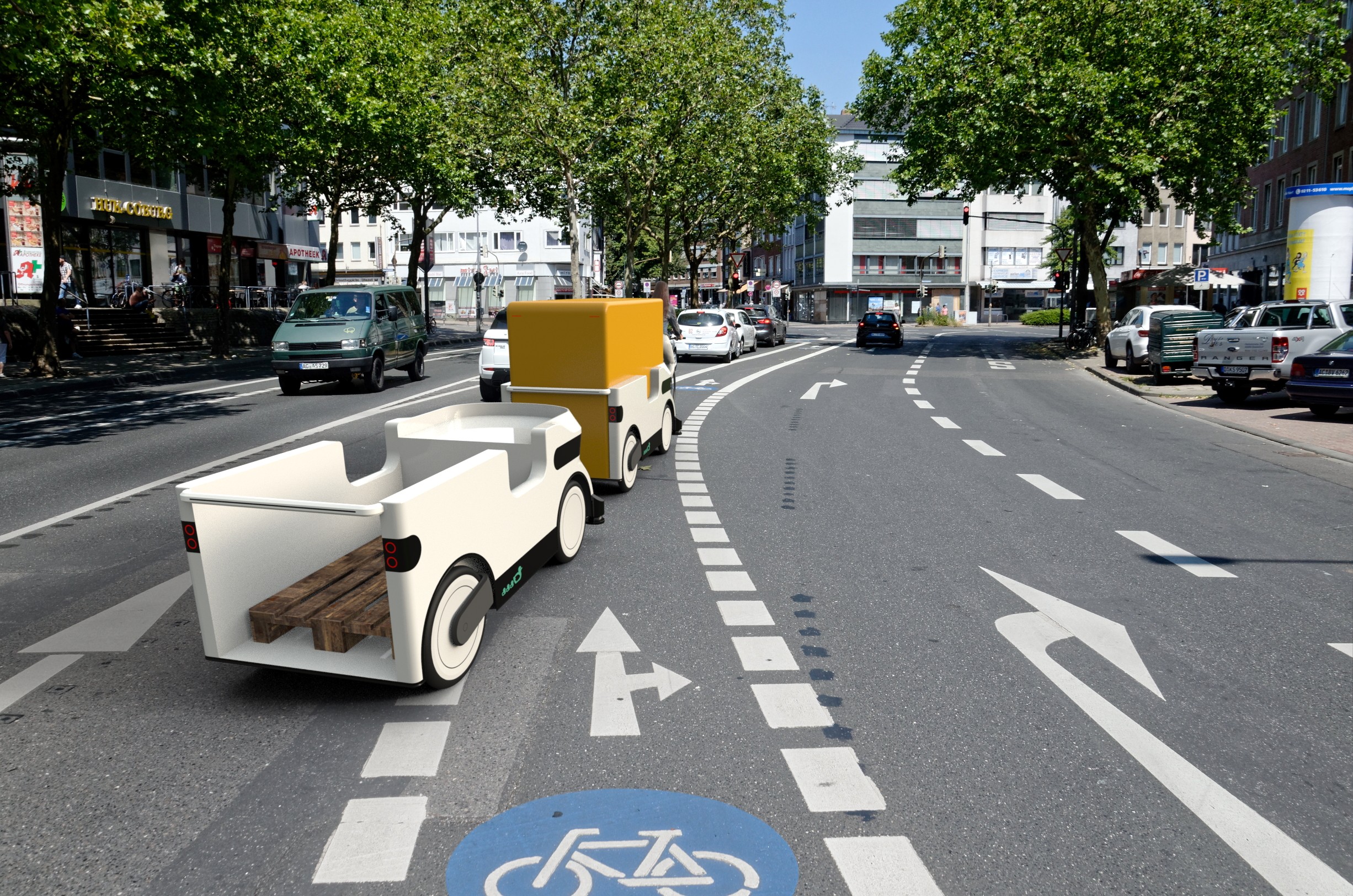 而其實國外有許多腳踏車外送的其中一項原因,就是因為在許多的先進城市當中已經有規劃無車市中心或者是零排放區域,那些區域沒辦法讓傳統的貨車進入,而這個Trailerduck將可以進入這些區域不受到限制,目前這個電動拖車還是需要有桿子連結到前方的腳踏車上頭,但車輛會其實已經有自動跟車的功能,意味著其實不需要拖引也可以讓車輛行走,而且也可以透過這樣的方式在後方多連結幾個拖車,形成一個類似小火車的場景,當然目前這些功能尚未開放,未來將會有更多可能性。