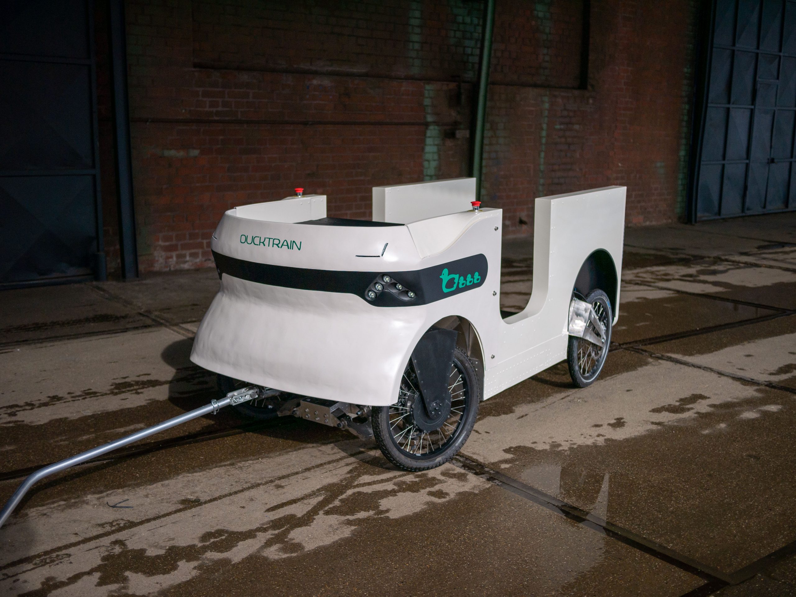 大家肯定都看過馬路上那些騎著腳踏車拖著回收的三輪腳踏車,或者是由破舊機車改裝的三輪小貨車,而其實在國外這種利用腳踏車拖著小貨斗的運用方式相當盛行,也有很多爸爸媽媽會騎著腳踏車後方拖著小朋友的拖車,而現在有一家德國公司DroidDrive推出了智慧拖車Trailerduck,它不只是有電力可以輔助讓腳踏車騎士更輕鬆,更讓人驚喜的是在未來這輛車還會自動跟車,你可能會在路上看到一整列的Trailerduck經過你面前。