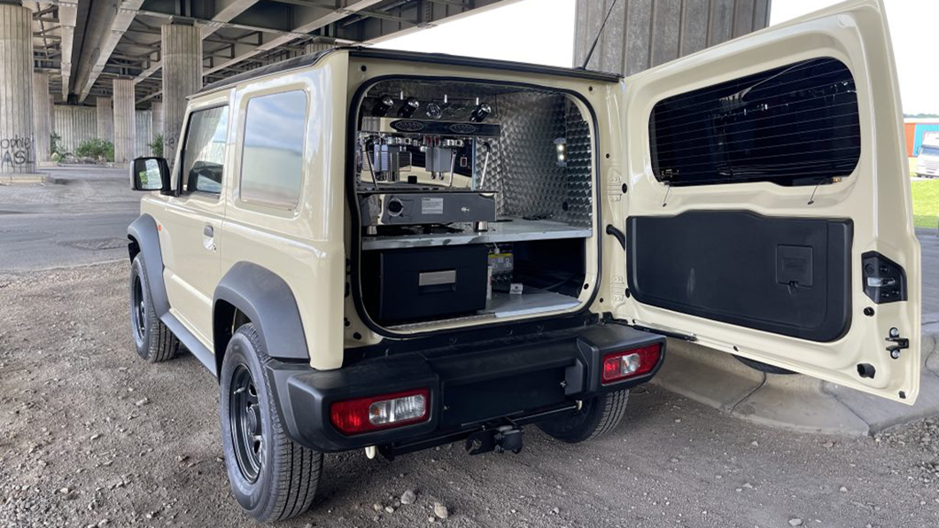 汽油味與咖啡香同樣都讓車迷振奮,因此許多車聚場合主辦方都會找來行動咖啡車為車主獻上一杯熱騰騰的咖啡。這靈感給了英國Suzuki一個啟發,於是乎他們將一台商用Jimny改造成專屬咖啡車。