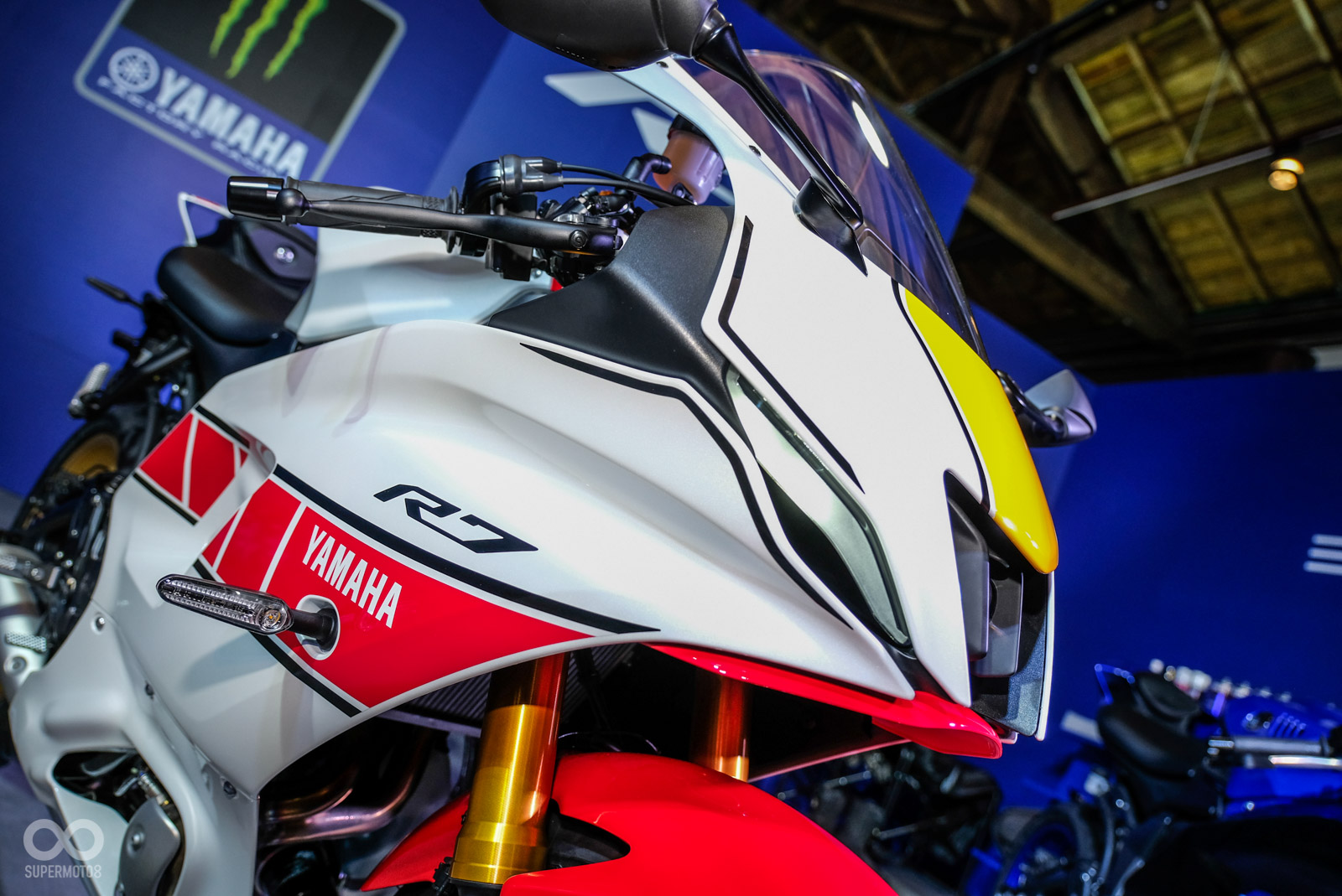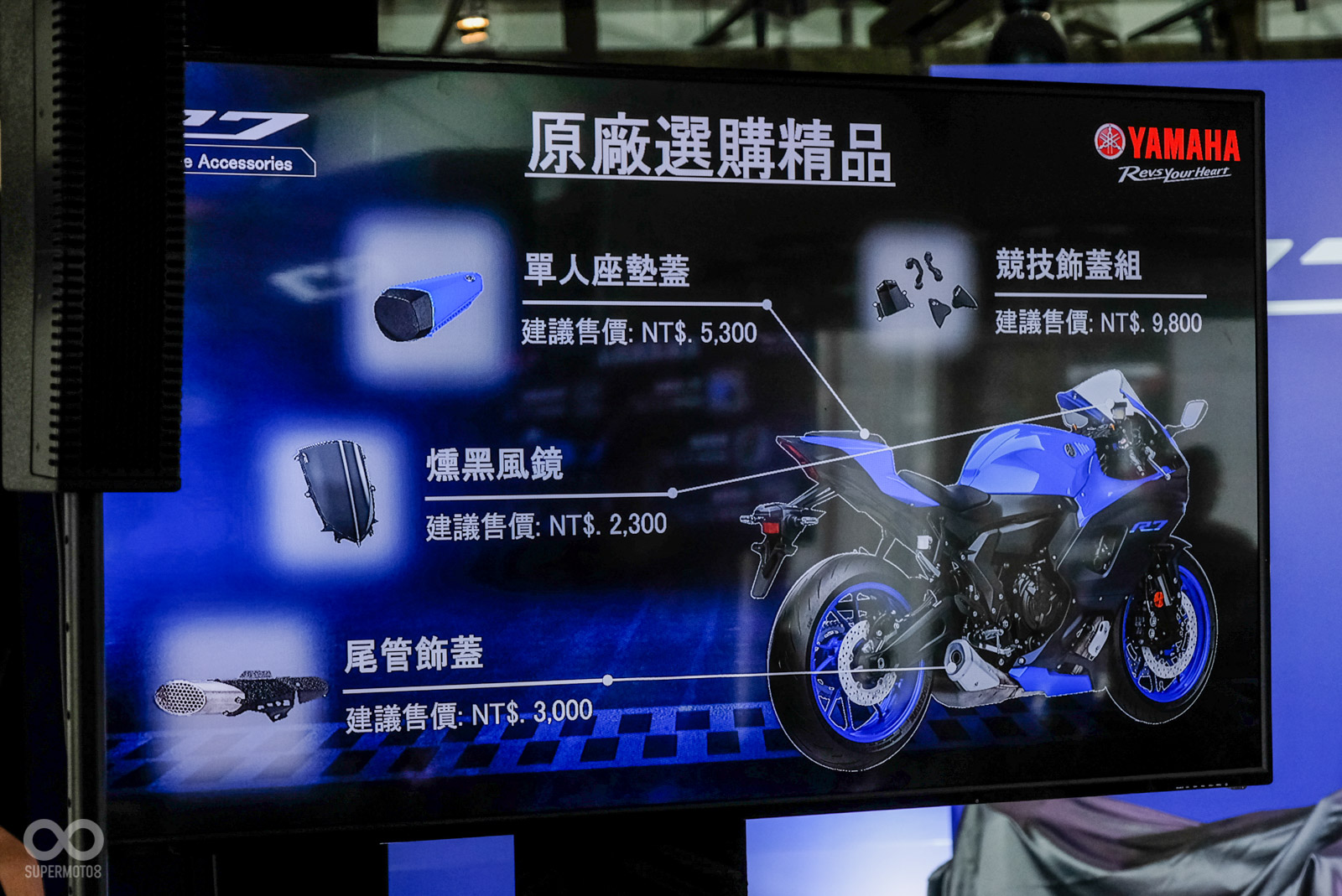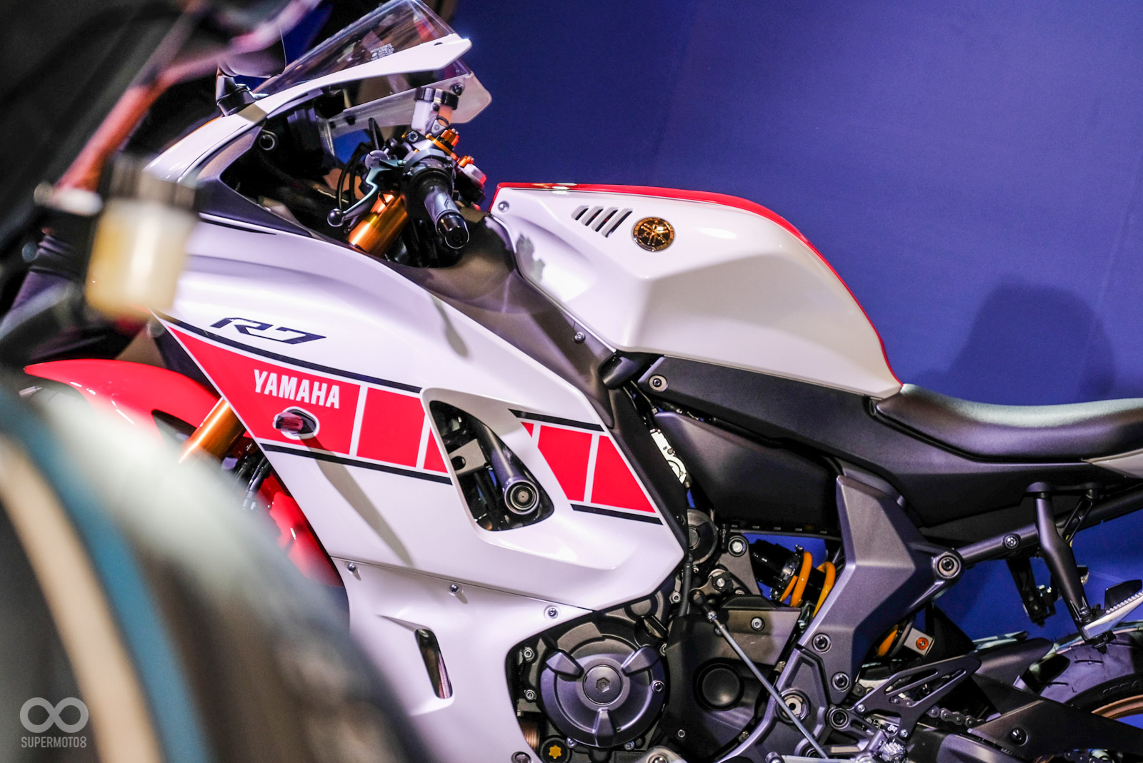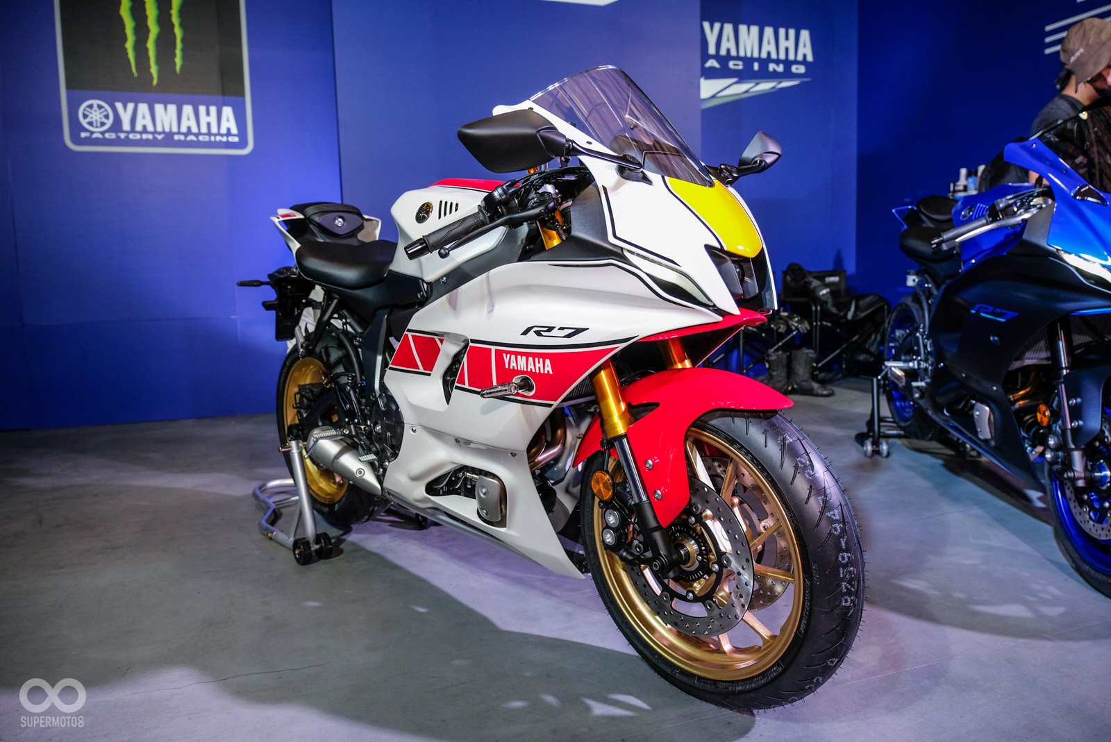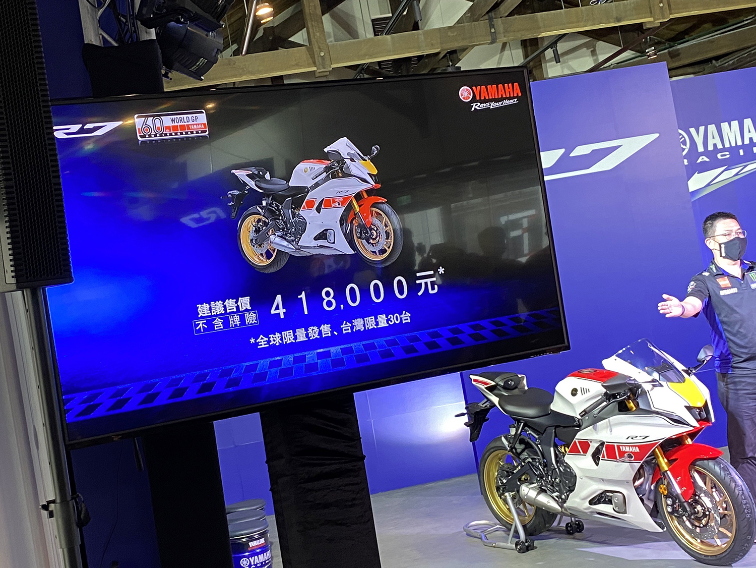 今天現場還同步亮相60週年紀念塗裝版的YZF-R7,這款使用復古SPEED BLOCK速度鏈塊的YZF-R7售價為41.8萬元,YAMAHA也宣佈紀念塗裝將會採限量30台的方式發售。