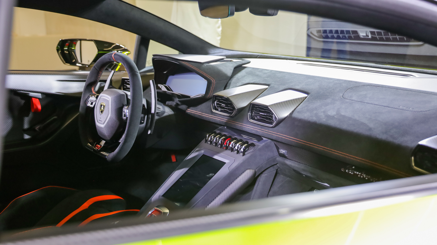 同時先進的科技也讓車主在感受職業車手般駕駛激情的同時,亦滿足舒適的日常駕駛。8.4吋的HMI觸控式螢幕,多點觸控功能使駕駛只需輕觸螢幕,便可透過此高度整合的界面即時掌控駕駛模式、LDVI車身動態整合系統、胎壓、煞車溫度等車輛動態。同樣可由觸控式螢幕控制的遙測系統,可針對遙測資料進行即時記錄,並可透過車主專屬的Lamborghini UNICA手機應用程式進行數據分析。