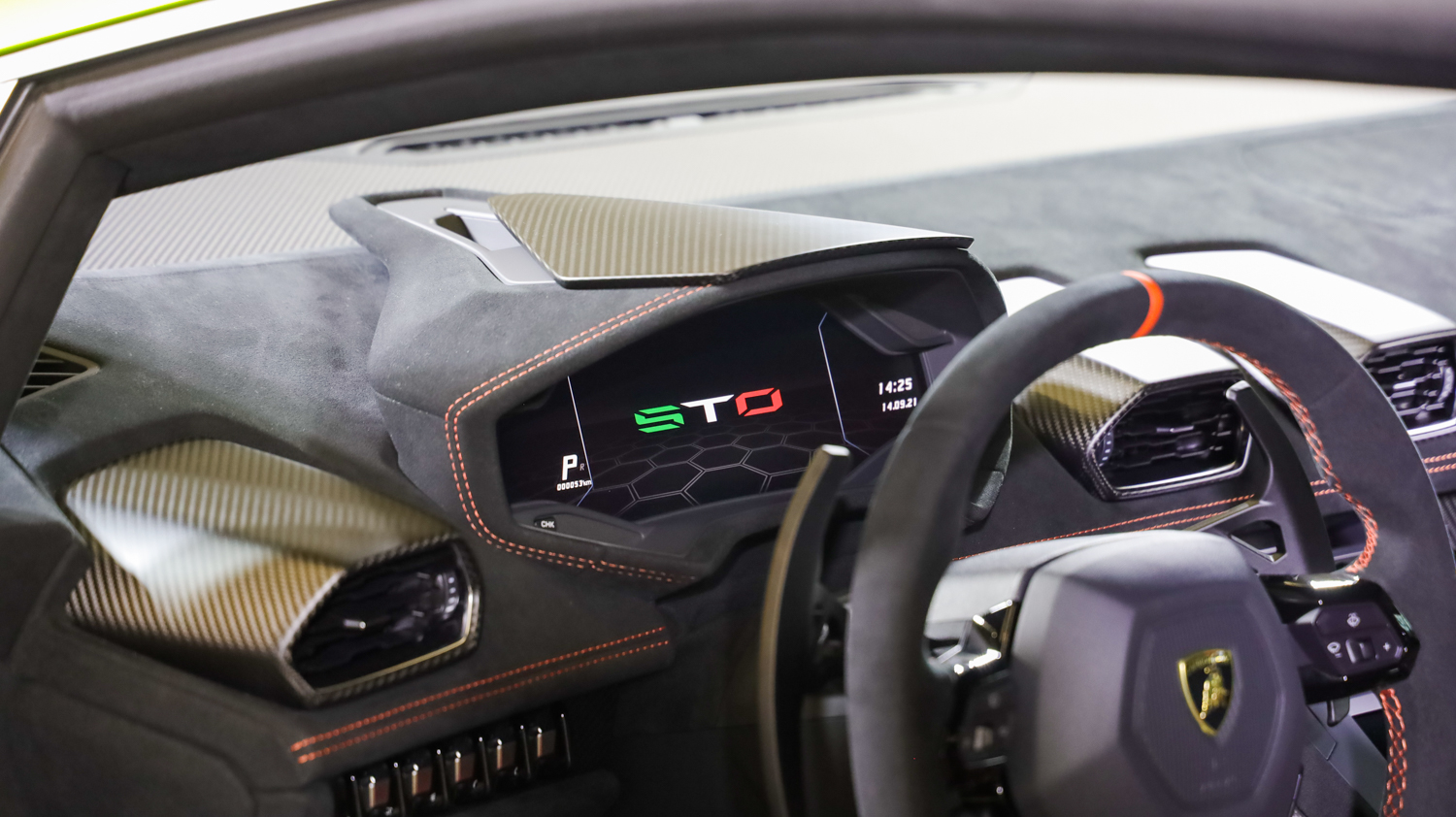 STO意即Super Trofeo Omologata,就像它的名字所賦予它的意義一樣,代表著可以合法行駛於一般道路環境的專業賽車。理念源自Lamborghini Squadra Corse賽車運動管理部門自主研發的統規賽車Huracán Super Trofeo EVO以及Huracán GT3 EVO賽車,為賽道極端操駕而調校,並為行駛於公路而生。