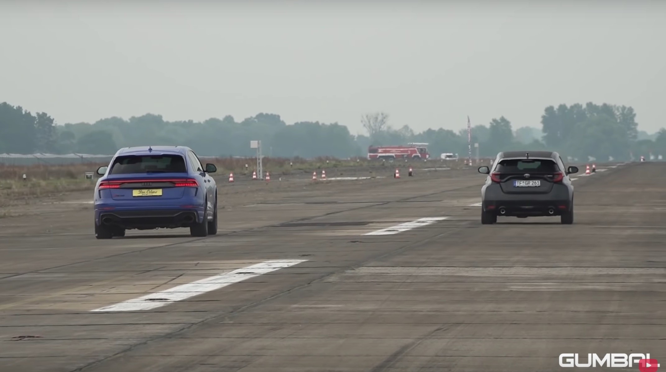 GR Yaris在賽道上的表現完全不用懷疑,已經有非常多人證明的這輛車有著超強的實力,只不過排氣量以及動力都不大的它,不會有人想要拿它來比直線加速比賽,1.6L直列三缸渦輪增壓引擎,擁有261hp最大馬力以及36.7kg-m的峰值扭力,官方數據百公里加速不用5.5秒,極速可達230km/h,這樣的成績在直線當中只能算是中等而已,但沒想到可以跟RS Q8這麼接近。