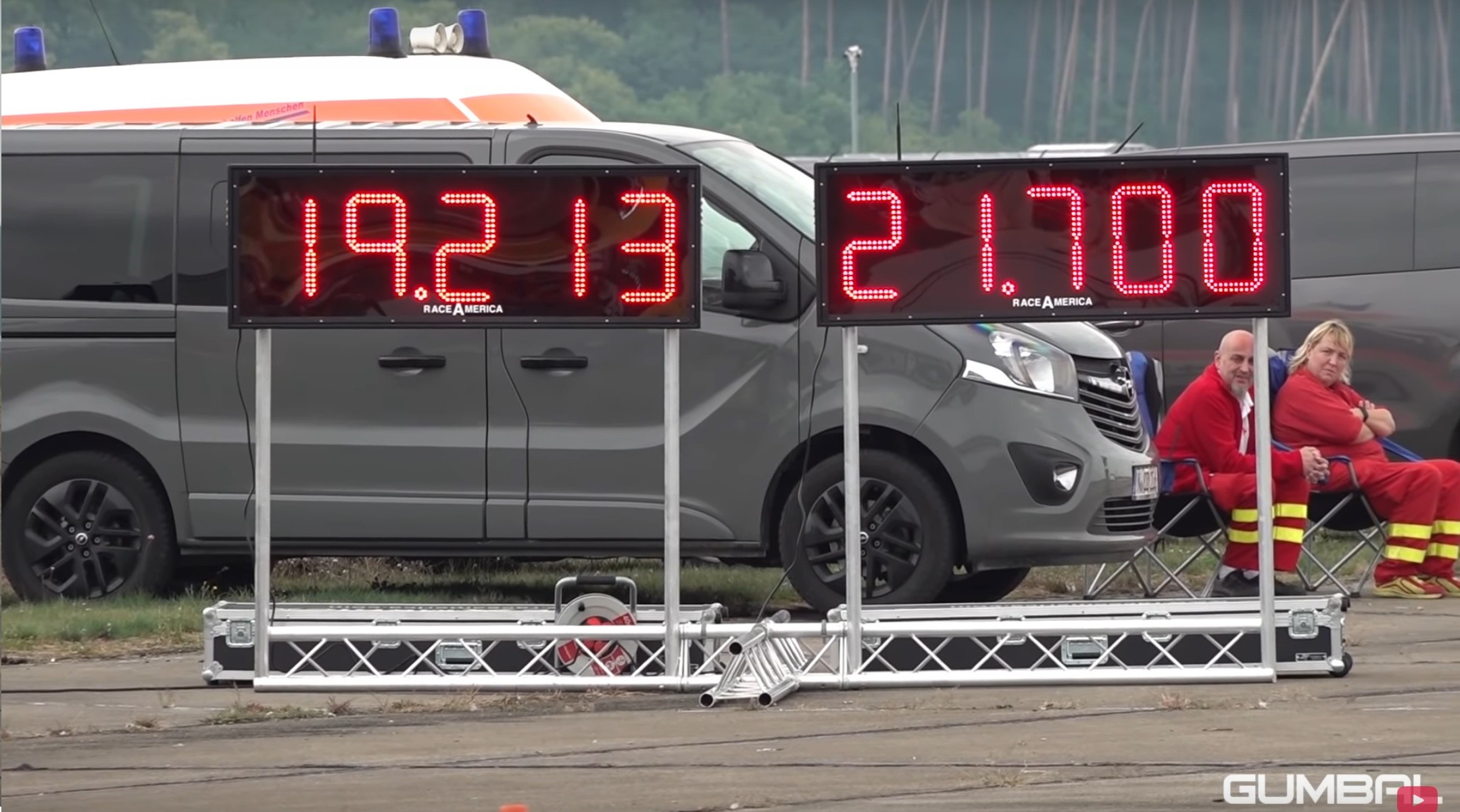 在影片當中可以看到雖然兩輛車在綠燈之後過了很久才發車,不過這個比賽有通過起點的時間以及終點的時間,因此兩者相減就可以得到1/2英里的行駛時間,GR Yaris花費了16.5秒,通過時速為196.39km/h,在後面還有面對Porsche 911 Turbo的片段以及BMW M3,雖然最後都輸給了他們不過如果以排氣量來看的話這輛暴力小鴨真的是有夠快的!