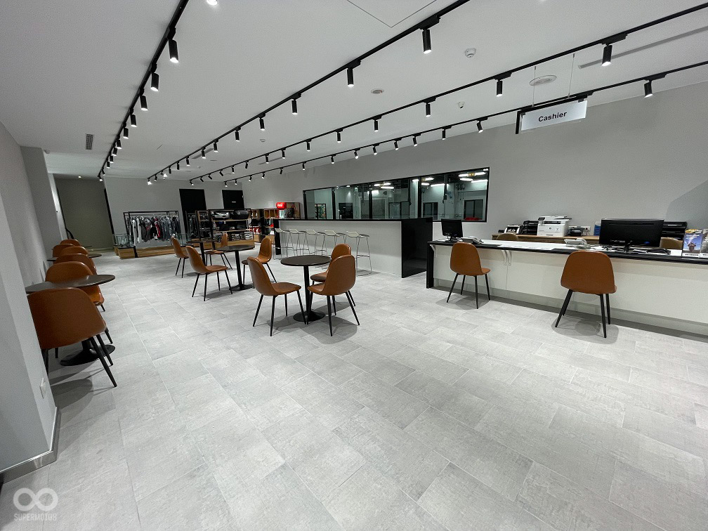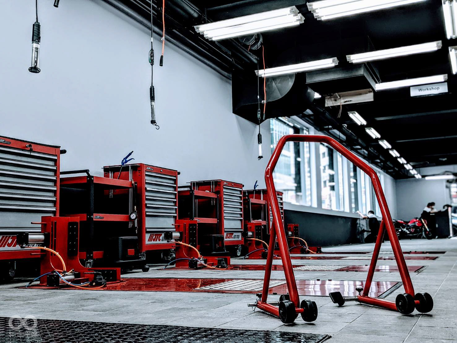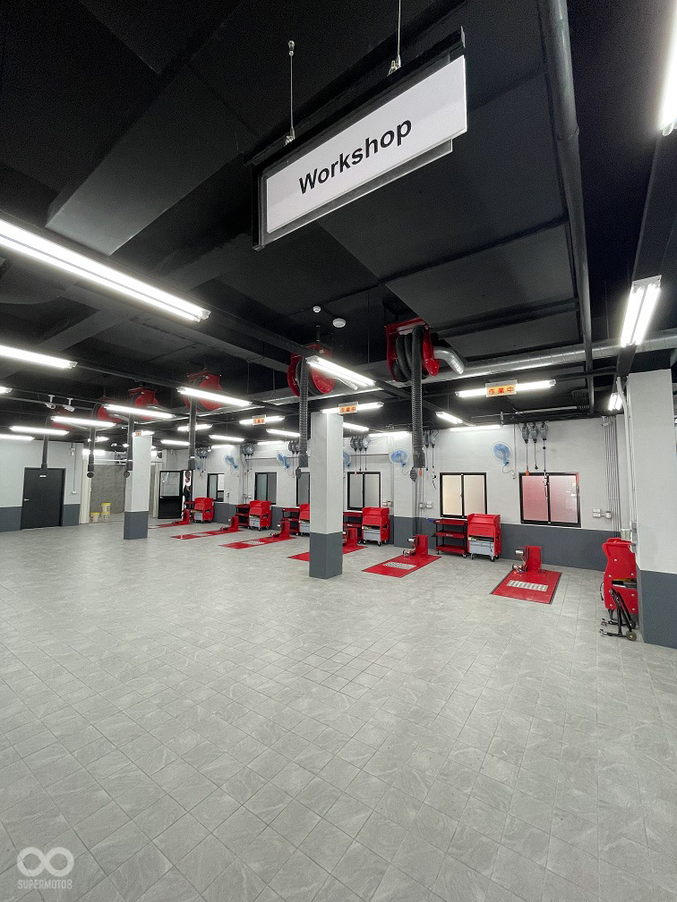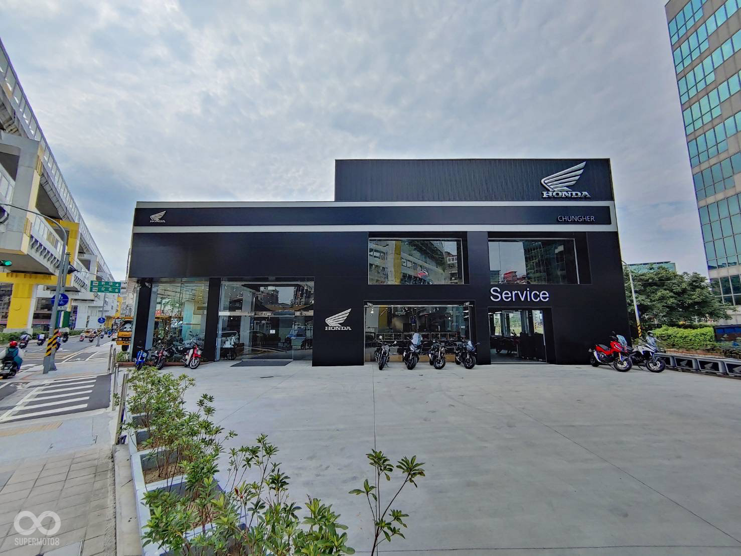 Honda Motorcycle Chungher提供了足夠寬敞的停車空間,即使不是開車來的顧客,搭乘捷運到橋和站走路僅三分鐘即可抵達;一旁就是台64快速道路,也方便重機騎士騎車前來。中和旗艦店展間佔地寬廣,展間明亮,展間內擺放了Honda品牌旗下各式產品,一進到大門就可以看到大型鍍鉻Wing Mark夢想之翼的Logo作為精神象徵,也傳遞著「Be Your Wing」的品牌精神,大面積落地玻璃窗引入外頭的景色與光線,窗外車水馬龍的中和街景環繞,在展間內彷彿世外桃源般清幽的氣息;另外在休息區也有許多安駕課程的照片,讓車主可以細細回味之外,也讓新顧客可以了解Honda售後服務的美好。維修區設置在展間旁,寬敞明亮的設計讓車主可以安心將車輛交給技師處理,如果願意的話也可以在旁觀看愛車,而進到展間休息則可以體會到中和店的用心之處,一旁有著專門放置安全帽以及吊掛外套的櫃體,讓騎車前來保養的車主不必大包小包進到展間內,更從容優雅地享受服務。