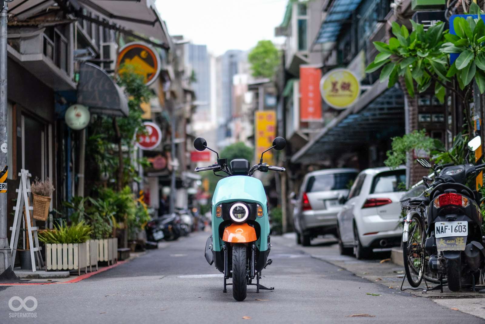 首先來看看車頭部分,4MICA用上一顆相當有復古感的圓形LED大燈,外框還加入搶眼的跳色燈殼,讓正面臉孔看起來更活潑俏皮,前面版則使用圓潤的斜面,帶出些許文青的柔和氣質。