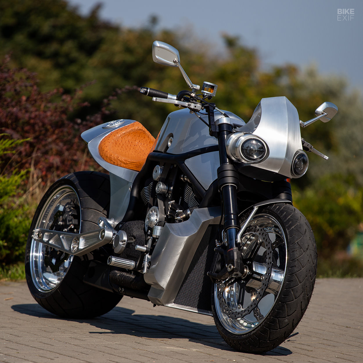 輪框的部分是來自美國Rick's Wheels,並且經過手工修改來適應V-Rod的車體構造,並且在輪框、培林以及墊片等零件上用的都是訂製品。前輪尺寸130X18,後輪則是300X18。V-Rod的車身為全套鋁合金手工成型作品,從大燈頭罩上的開了兩個圓形的燈孔,頂部是Koso Speedo,駕駛艙包含了RIZOMA後照鏡與小型的開關座等。